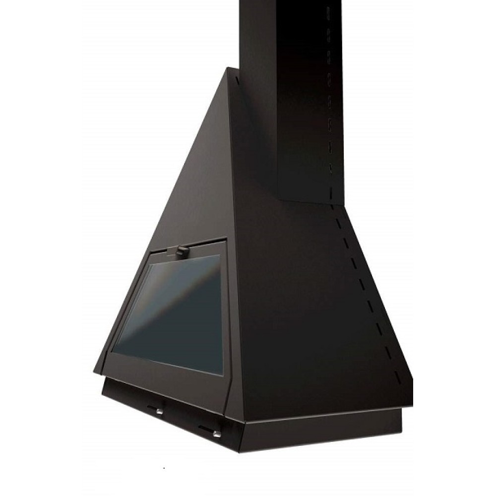- Треугольный пристенный камин с откидной дверцей