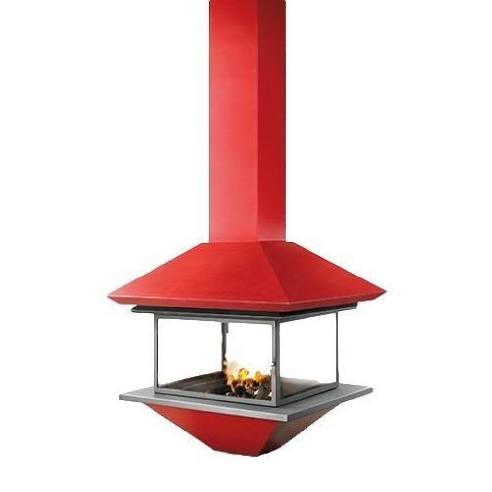 Готовый дровяной каминокомплект TRAFORART (Трафорарт) GAIA CENTRAL со стеклом - современный подвесной камин с четырехсторонним остеклением. Островная модель, выполненная в стиле хай-тек, является оригинальным решением для современного интерьера. Она оснащена двойным корпусом, что допускает его цветное окрашивание.