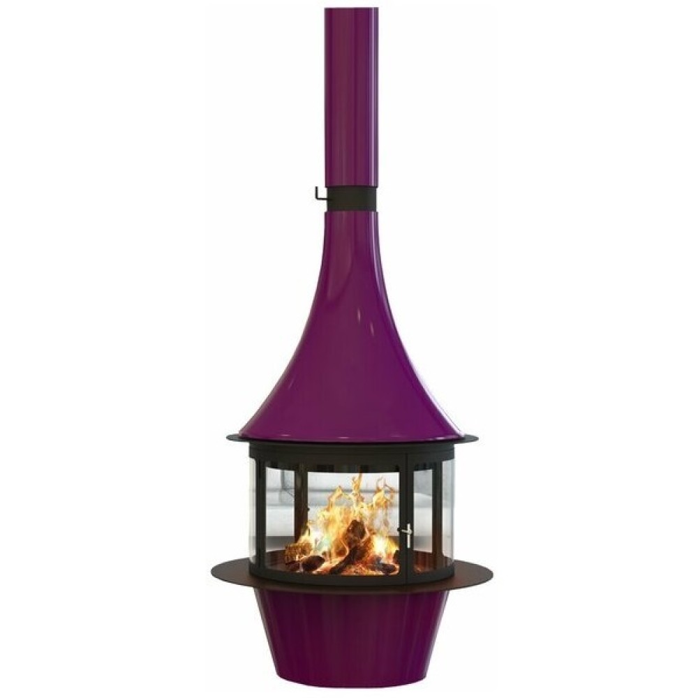 Готовый дровяной каминокомплект TRAFORART (Трафорарт) LORENA CENTRAL - великолепный двойной кожух и два интегрированных входа воздуха для горения создают великолепную возможность для включения такого камина в самые изысканные интерьеры. Длинный элегантный дымоход плавно переходит в верхнюю округлую часть камина. Ниже идет сам очаг – застекленный по всей окружности.