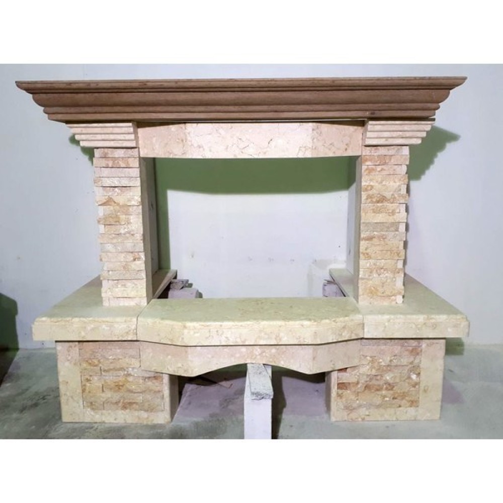 Adela Giallo М с700 является декоративной облицовкой для камина, выполненной в стиле кантри, очень симпатичной, компактной и не займет очень много места. Представленная декоративная облицовка изготавливается из красивого темно-бежевого камня, а площадка производится из нежного бежевого мрамора. Облицовка имеет элементы, произведенные из полированного мрамора марки Giallo, а колотые элементы из красивого кремово-желтого песчаника марки Pedra Dorata. Материал: полированный мрамор Giallo Atlantide, песчаник Pedra Dorata.