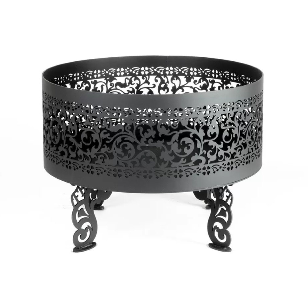 Костровая чаша Fire bowls Антик барокко (60х60х3) имеет оригинальный рисунок, который придает особого шарма при розжиге в темное время суток. Материалом изготовления служит сталь высокого качества, которая не деформируется под воздействием высоких температур. Чаша устанавливается на ножках и легко перемещается.