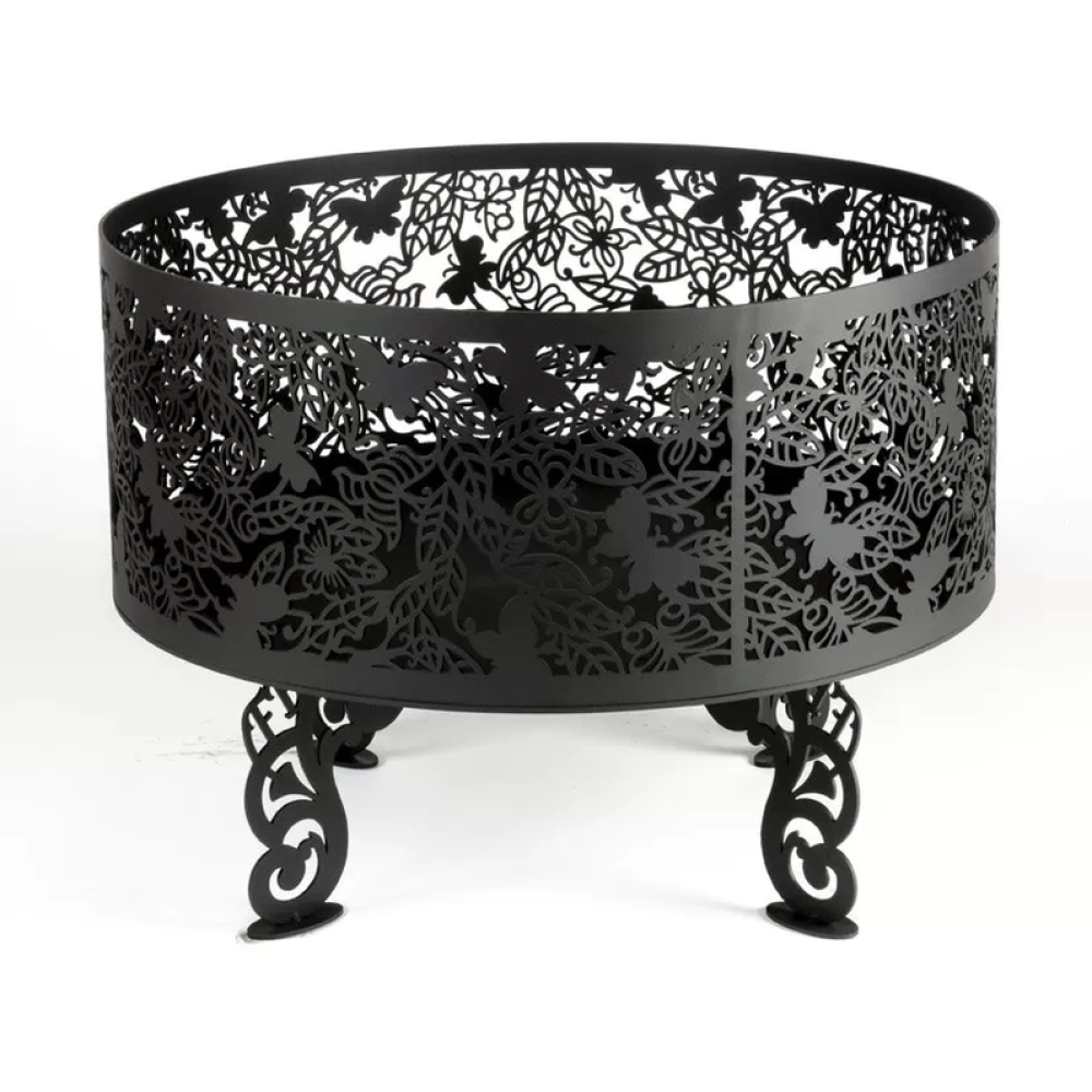 Костровая чаша Fire bowls Бабочки (60х60х3) отличается прочной и устойчивой конструкцией, выполненной из стали высокого качества, которая декорирована оригинальным резным орнаментом. Задача чаши - повысить уровень комфорта во время отдыха на природе и обезопасить территорию от возможноого возгорания сухой травы.