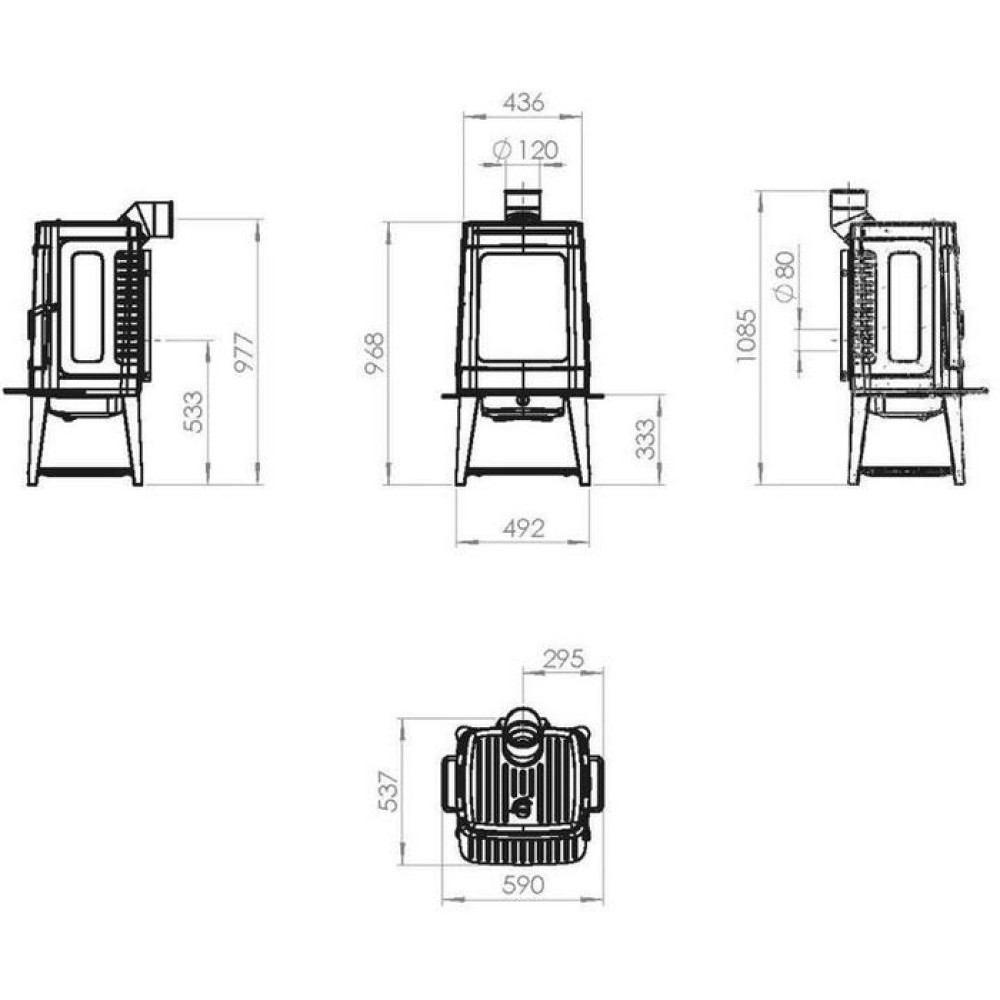 - Верхнее или заднее подключение дымохода диаметром 120 мм.