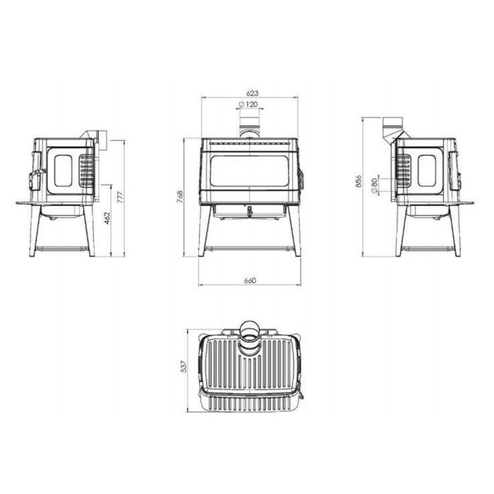 | Вид топливаДрова | Высота, см76,8 | Габариты (ВхШхГ), мм768х660х537 |