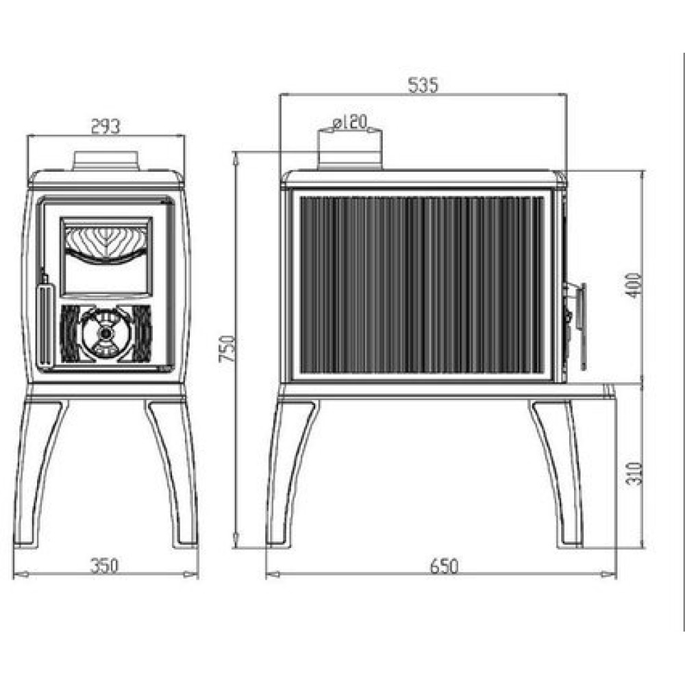 | Вид топливаДрова | Высота, см75 | Габариты (ВхШхГ), мм750х350х650 |