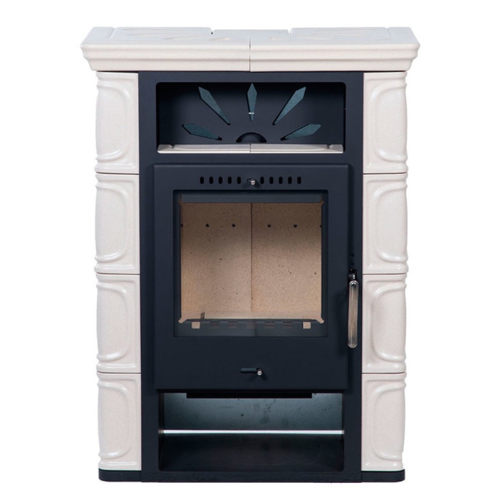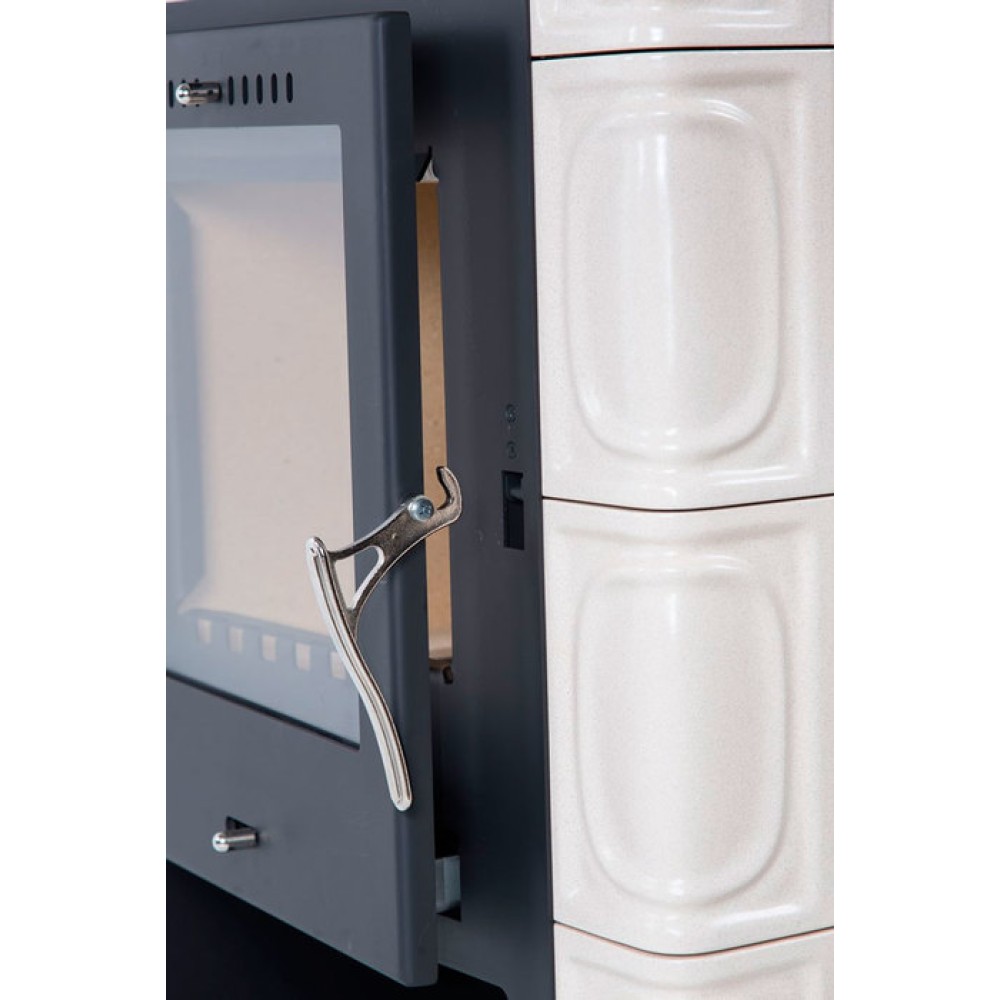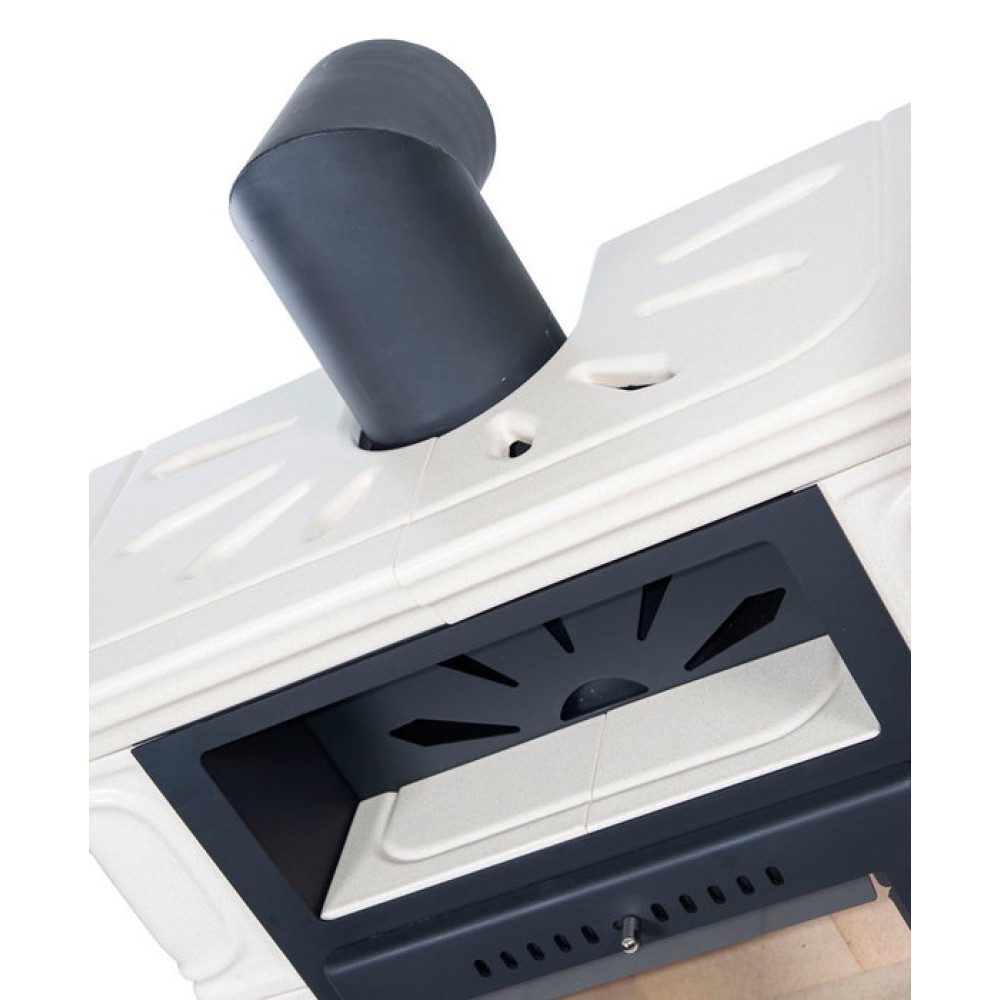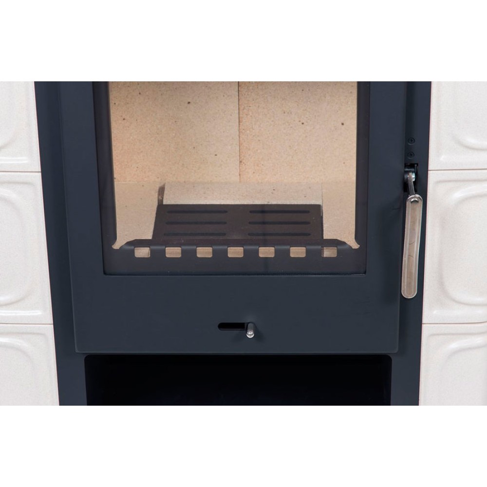 Thorma (Торма) BORGHOLM TOP, черный/керамика слоновая кость - стильная отопительная печь с дровником для хранения топлива. Корпус из жаропрочной стали украшает керамическая облицовка, придавая модели утонченный винтажный стиль. Топка выполнена из шамотного кирпича, устойчивого к высоким температурам и хорошо аккумулирующего тепло: благодаря этому корпус печи не нагревается, а воздух в помещении остается теплым даже после полного прогорания топлива.