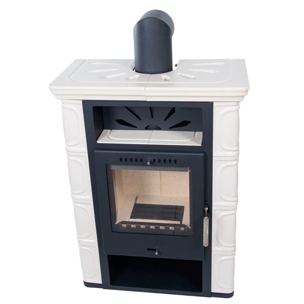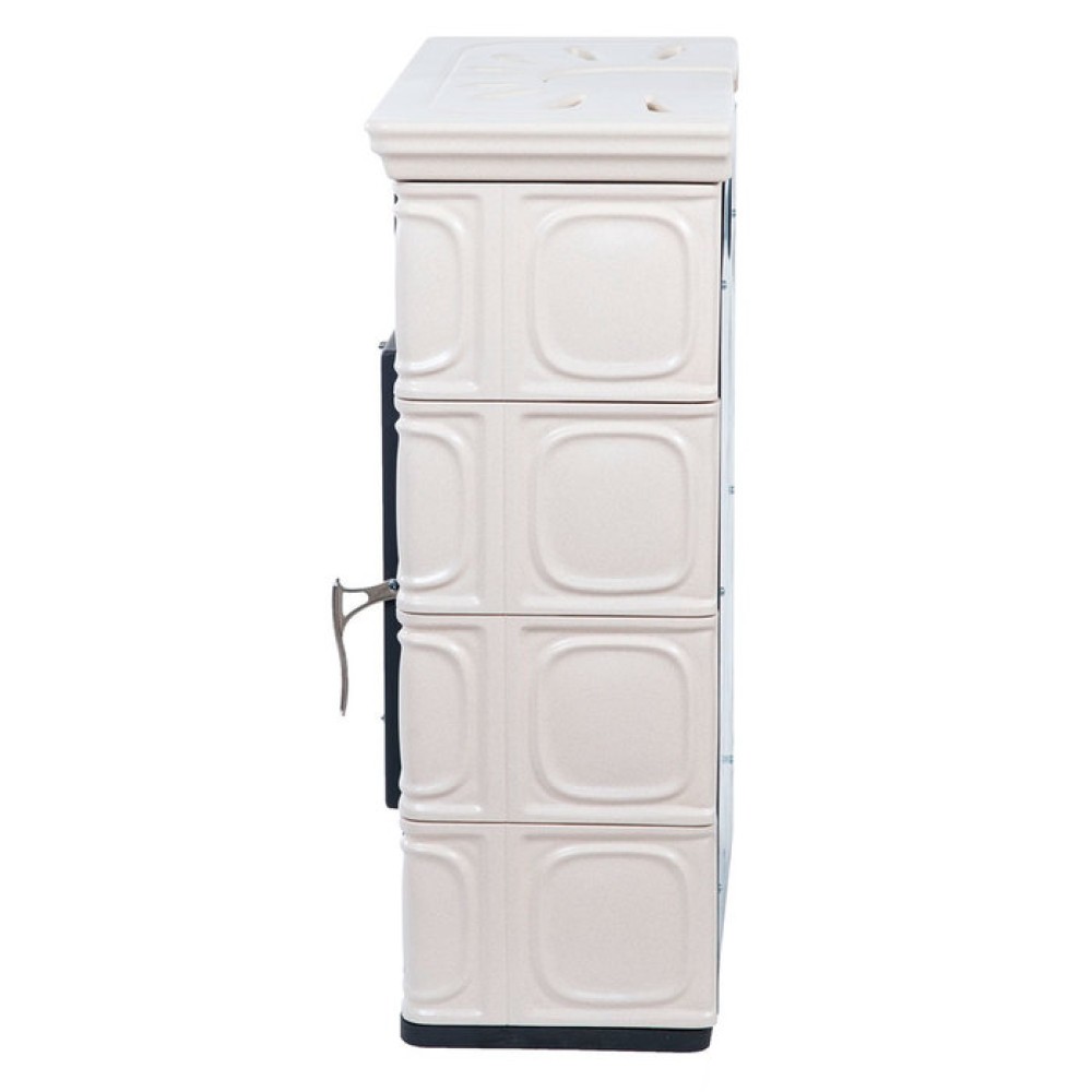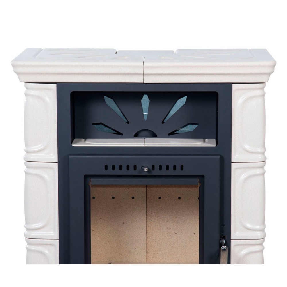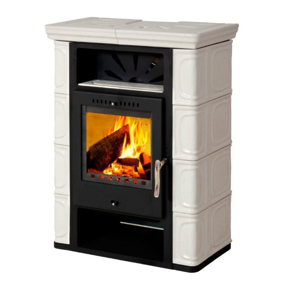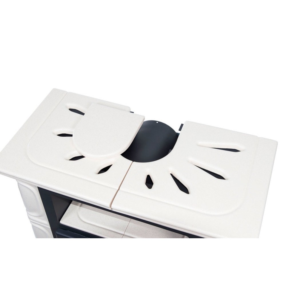 Thorma (Торма) BORGHOLM TOP, черный/керамика слоновая кость - стильная отопительная печь с дровником для хранения топлива. Корпус из жаропрочной стали украшает керамическая облицовка, придавая модели утонченный винтажный стиль. Топка выполнена из шамотного кирпича, устойчивого к высоким температурам и хорошо аккумулирующего тепло: благодаря этому корпус печи не нагревается, а воздух в помещении остается теплым даже после полного прогорания топлива.