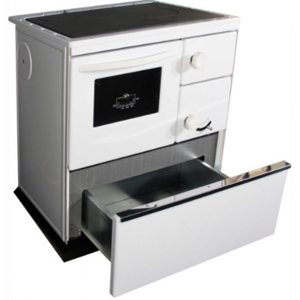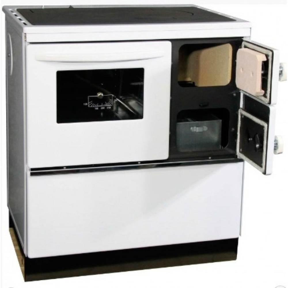Дровяная печь THORMA (Торма) OKONOM75/FIKO DELUXE, левая, белая - стильное и удобное оборудование, на котором можно готовить пищу при помощи конфорки или духовки. Агрегат сделан из стали высокого качества и способен обогревать пространство площадью до 70 квадратных метров в режиме длительного горения.