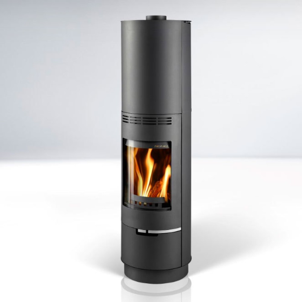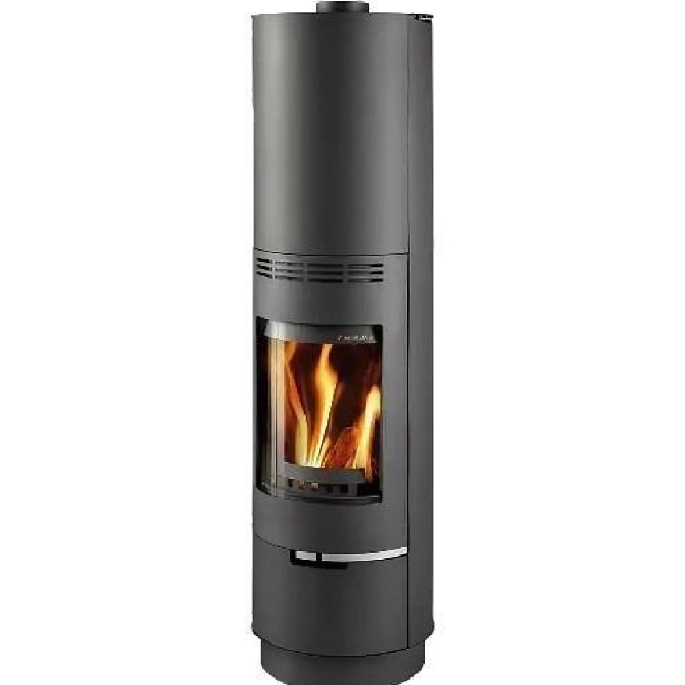 Дровяной камин THORMA (Торма) SEVILLA, черная способен эффективно обогреть помещение и украсить его интерьер. Возможность верхнего подключения дымохода позволяет устанавливать роскошную печь и в центре помещения. Больших размеров радиальное стекло дверцы позволяет визуально контролировать процесс и любоваться буйством огненной стихии.