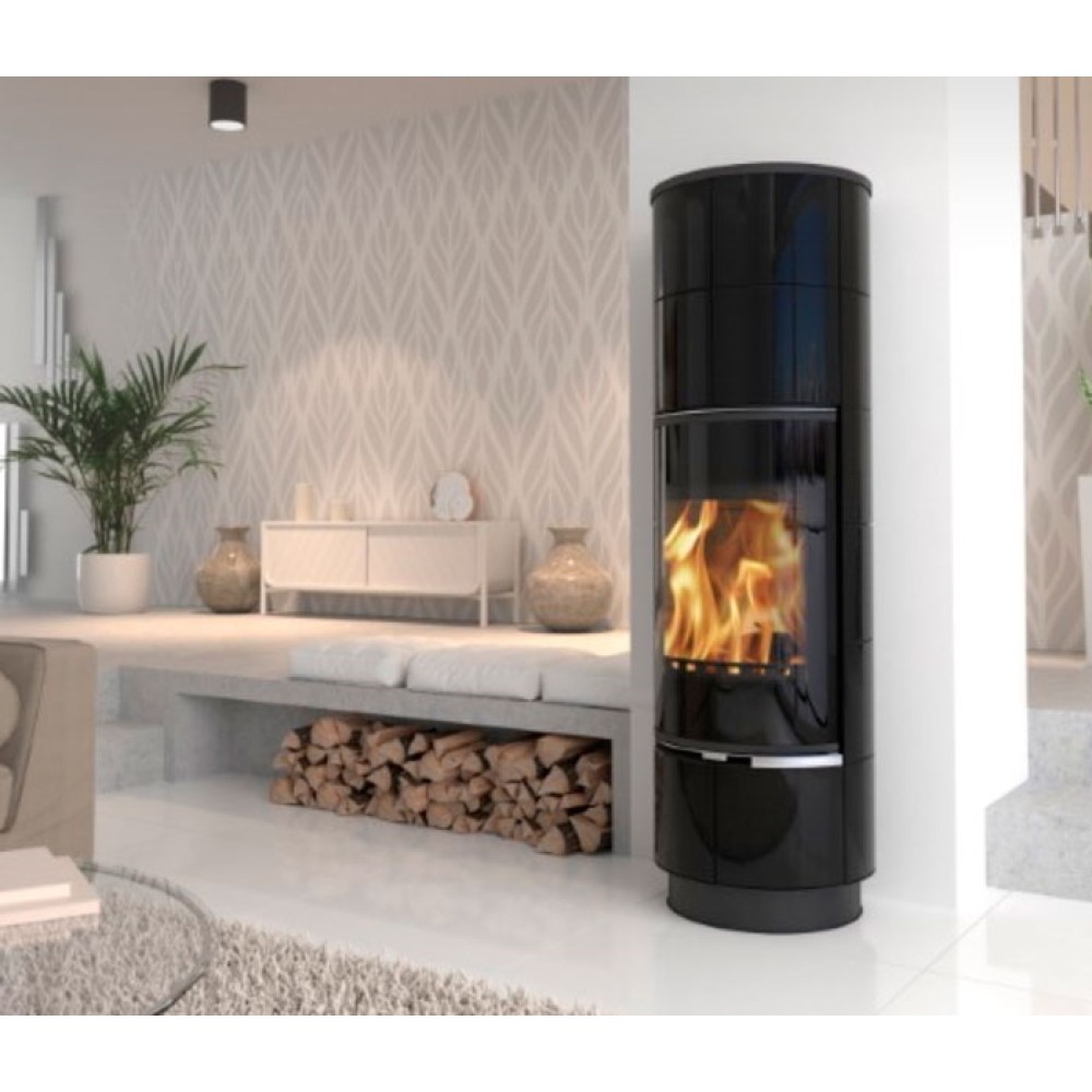 Thorma (Торма) DELIA Ceramic PLUS, черная/керамика черная - дровяная печь с элегантным дизайном. Керамическая облицовка поверх прочного стального корпуса отлично сочетается с оттенком закругленной дверцы, открывающий эффектный вид на горение пламени.Компактная конструкция и возможность выбора между задним и верхним вариантом подключения дымохода позволяет комфортно располагать печь в любом помещении.