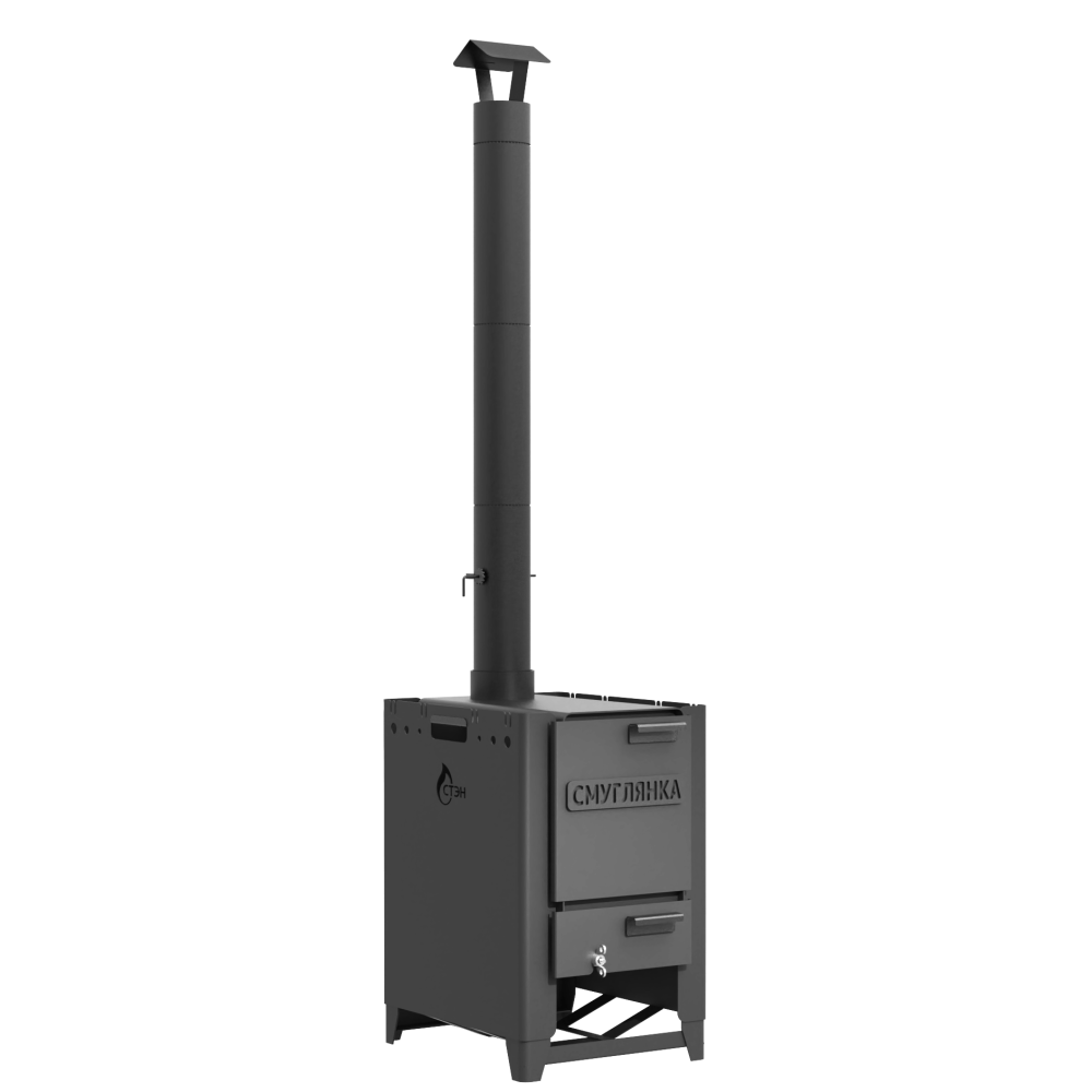 Отопительная печь «Смуглянка» предназначена для отопления палаток, блиндажей, КУНГов, бытовок, вагончиков, землянок. Печь-буржуйка «Смуглянка-4» имеет цельносварной корпус из стали толщиной 3мм. Вокруг корпуса печи находятся защитные экраны, образующие с ним три конвективных канала, усиливающих циркуляцию воздуха и ускоряющих обогрев помещения.