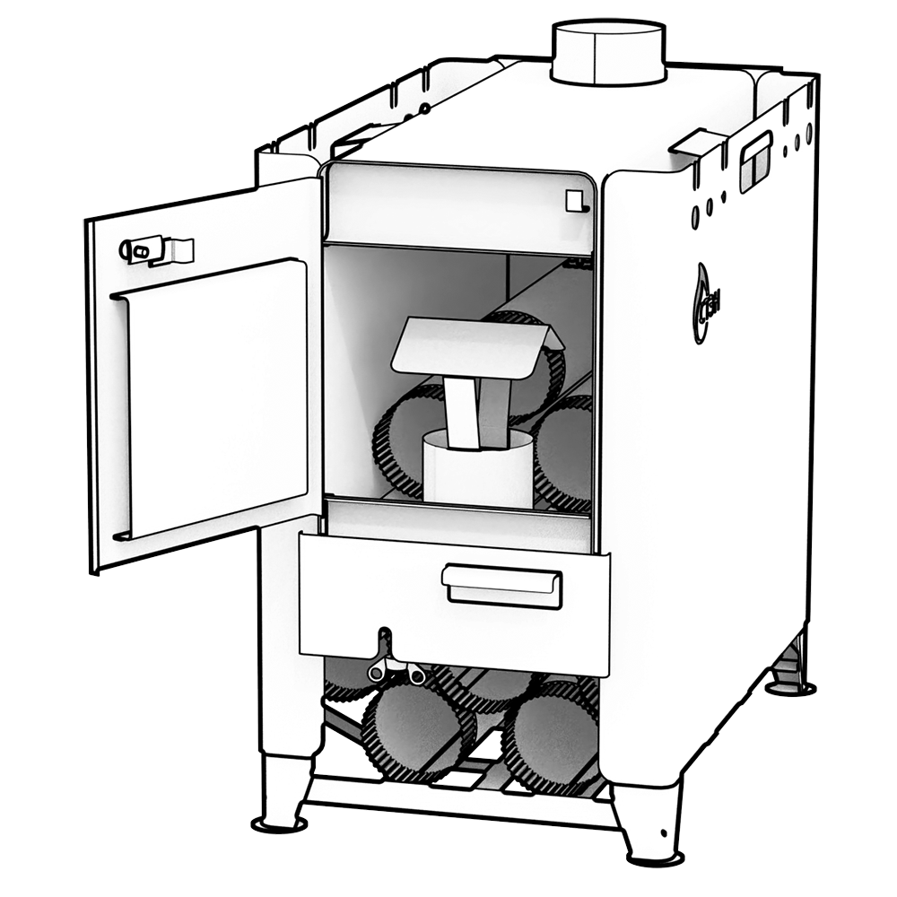 | Глубина × Ширина × Высота, (в упаковке), мм710х400х700 | Глубина × Ширина × Высота, мм695х385х675 | Глубина топки, мм600 |