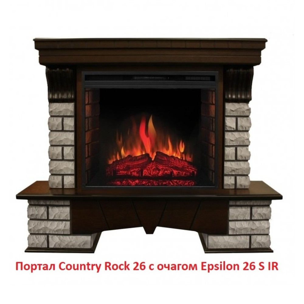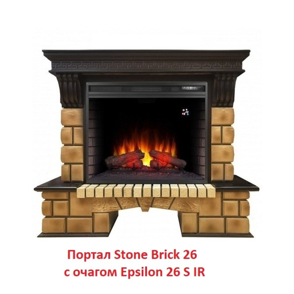 Встраиваемый электроочаг Real Flame (Реал Флейм) Epsilon 26 S IR снабжен звуковой имитацией потрескивания дров при сгорании. Другой особенностью этой модели являются вставки кирпичной кладки сбоку, что еще больше усиливает эффект настоящего камина. Очаг имеет пять уровней регулирования пламени, семь режимов нагрева, снабжен пультом дистанционного управления и подсветкой дров и пламени по LED-технологии.
