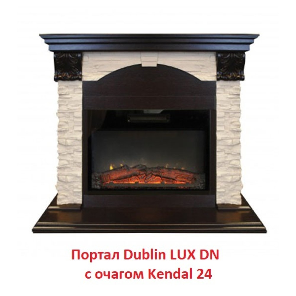 Для большей наглядности в электроочаг Real-Flame (Реал Флейм) Kendal 24 установлено панорамное фронтальное стекло, за которым располагается муляж дров с спроектированным пламенем. Поскольку очаг имеет обогревающий элемент, он снабжен защитой от перегрева, что делает его безопасным в пользовании. В дополнение к панели управления на камине есть пульт ДУ.