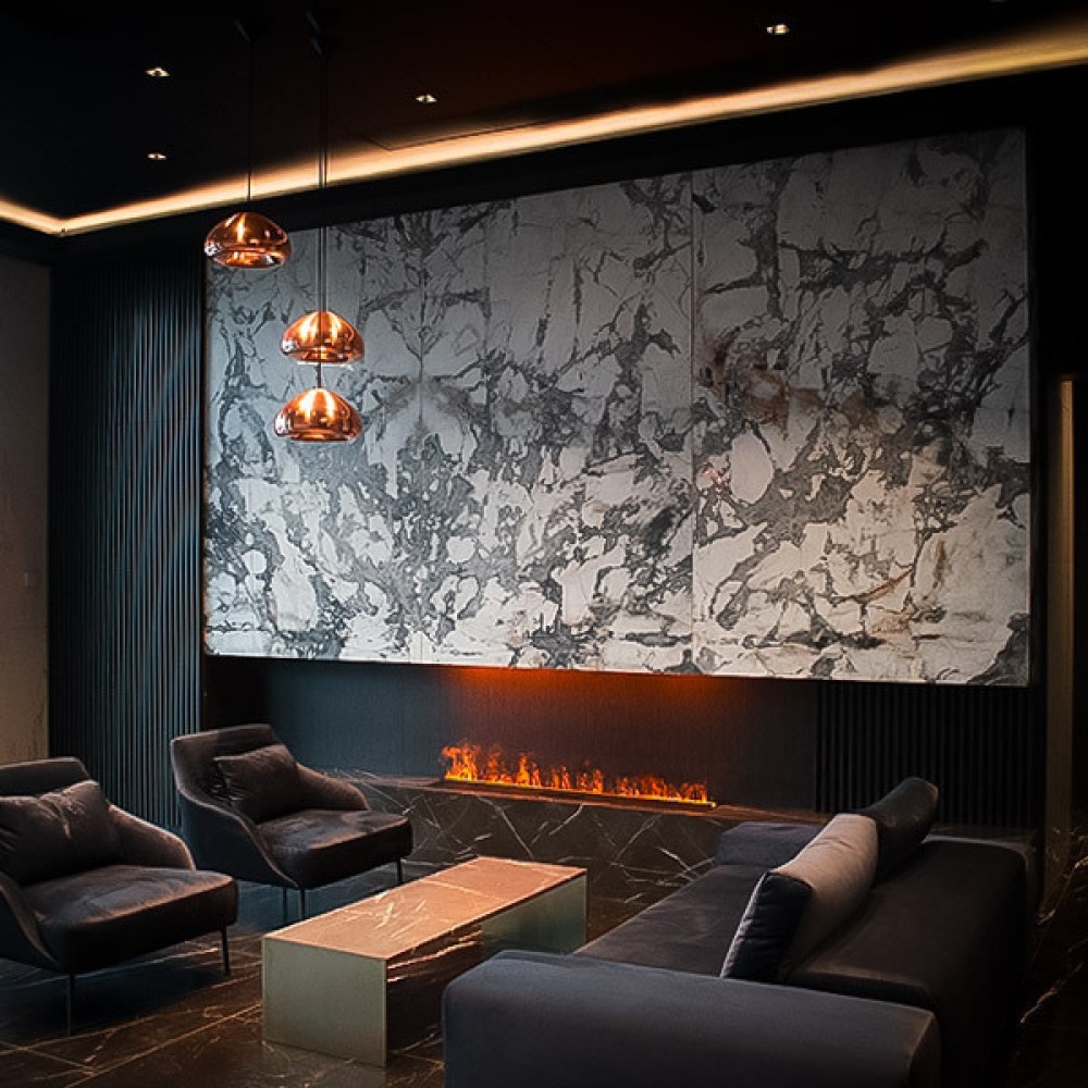 Очаг может быть встроен в нишу в стене, установлен в виде островной конструкции, а также смонтирован в мебельные элементы.