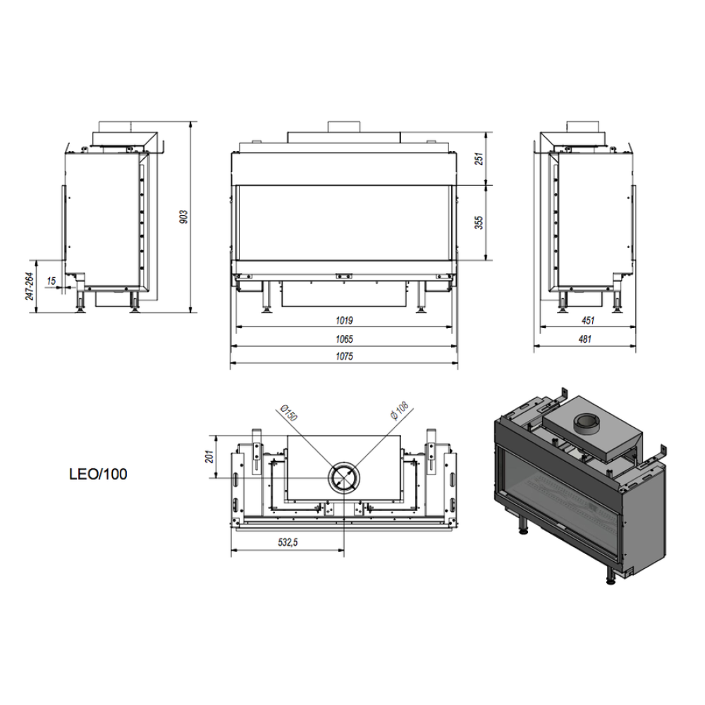 Технические характеристики Встраиваемый газовый камин Kratki LEO/100/G31/37MBAR(баллонный газ)