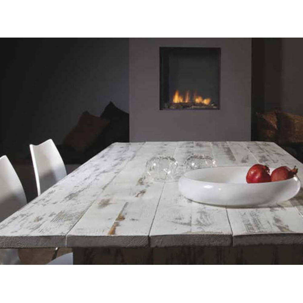 - Возможность наполнения топки керамической имитацией дров или каррарской галькой;