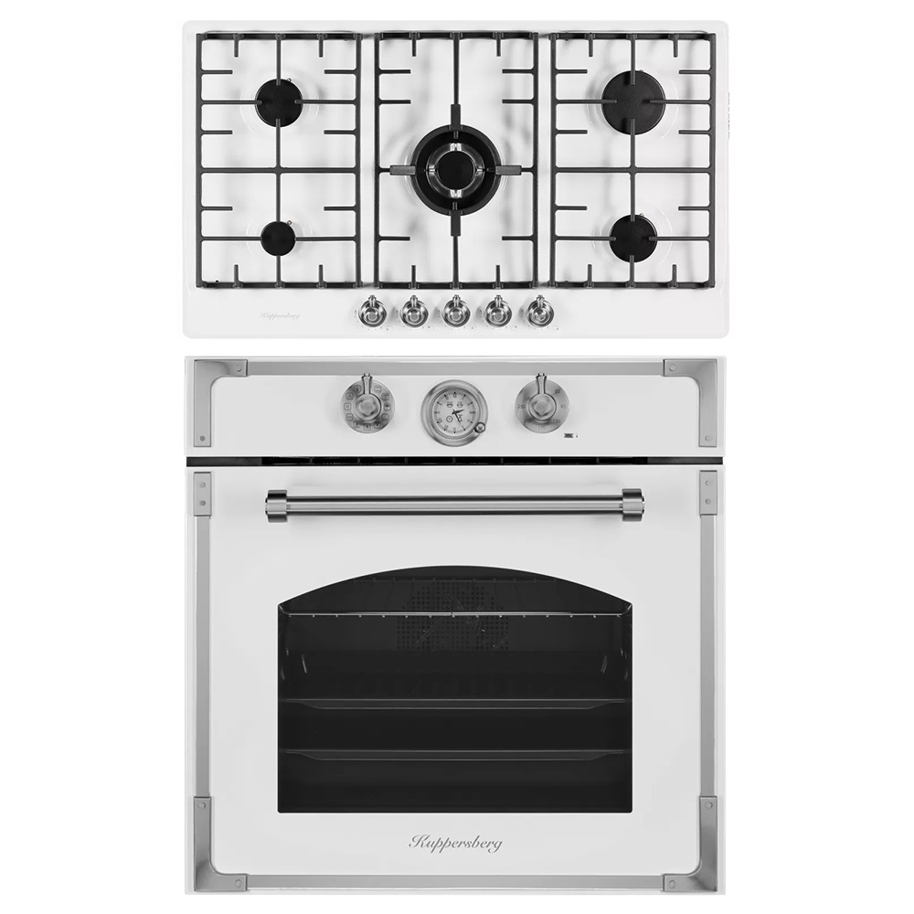 Варочная поверхность с классическим дизайном, выполненная в белом цвете. Элегантность и стиль данной модели подчеркиваются серебристыми элементами фурнитуры. Механическое управление расположено спереди, что обеспечивает удобство и простоту эксплуатации. Переключатели поворотного типа позволяют точно регулировать мощность горения, а автоматический электроподжиг обеспечивает быстрый запуск горелок. Панель конфорок изготовлена из эмали, что обеспечивает долговечность и легкость в уходе. Всего на панели расположено пять газовых конфорок различной мощности от 1 до 3.6 кВт. Наличие центральной конфорки повышенной мощности и конфорки WOK делает эту модель идеальной для приготовления разнообразных блюд. В комплекте предусмотрены форсунки для баллонного газа, что делает эту модель универсальной для использования в любых условиях.
