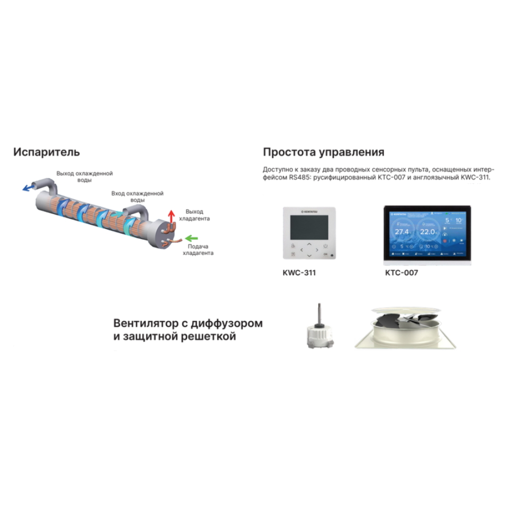 Чиллеры модульной конструкции серии KCRN от китайского производителя Kentatsu точно поддерживают температуру за счет пропорционального распределения нагрузки. Использование спирального компрессора обеспечивает низкий уровень шума и вибрации, стабильную работу и надежность на длительный срок эксплуатации.