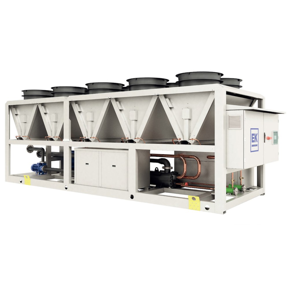 Чиллеры с воздушным охлаждением и винтовыми компрессорами серии EKCCH/BS от компании Euroklimat предназначены для установки вне производственных помещений. Номинальная холодопроизводительность представленных в линейке моделей: 372-1530 кВт. Все установки оснащаются качественными комплектующими, обеспечивающими надежную и долговечную работу.