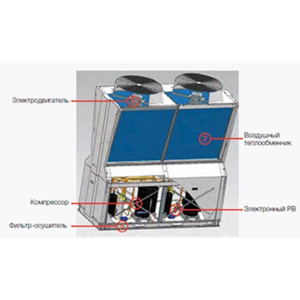 - Кожухотрубный воздушный теплообменник, реле протока, EEV, фильтры осушители, фильтр 40 mesh в стандартной комплектации