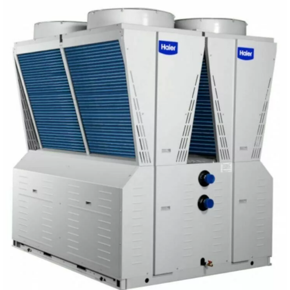 Для наружной установки наиболее широко используются чиллеры Haier с воздушным охлаждением серии CA_EAND. Модульная конструкция позволяет объединять до 16 базовых аппаратов в один контур, увеличивая диапазон производительности устройств до 2080 кВт. Модельный ряд представлен агрегатами холодопроизводительностью от 30 до 130 кВт, которые подходят для обслуживания значительных по площади помещений и наделены низкими показателями шума.