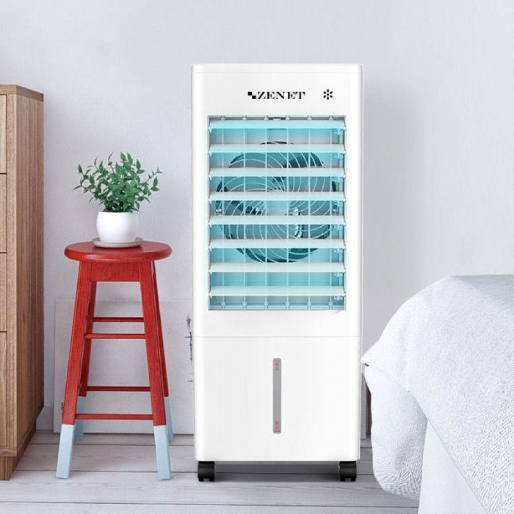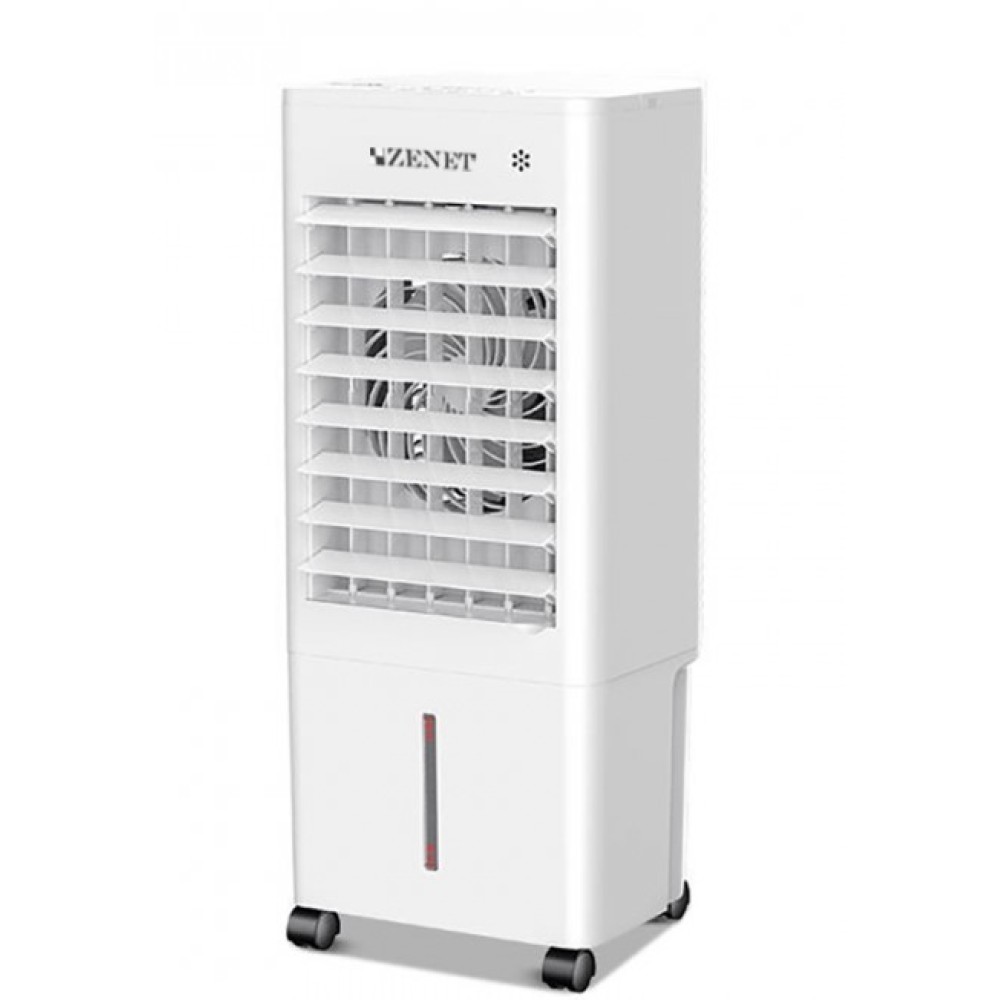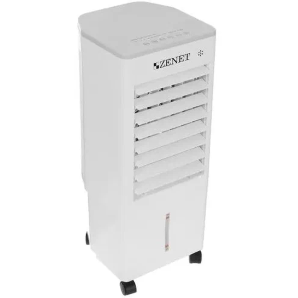 Zenet (Зенет) Zet-485 – это климатизатор, который предназначен для мягкого охлаждения воздуха в помещении. Агрегат работает на воде, что делает его абсолютно экологичным и безопасным для здоровья человека. На верхней поверхности прибора установлена сенсорная панель управления с дисплеем. Для легкого перемещения этот кондиционер оборудован колесиками и удобной ручкой.