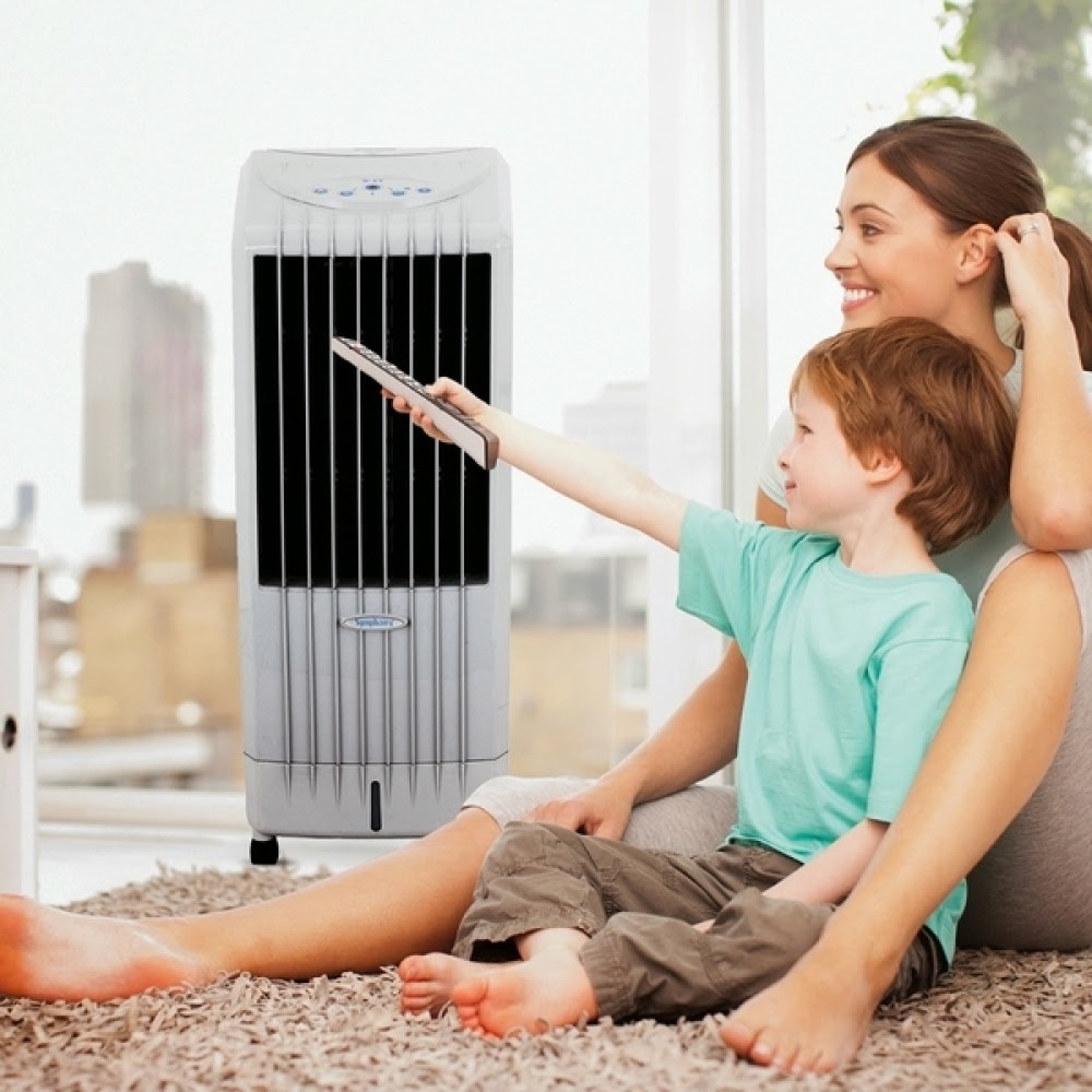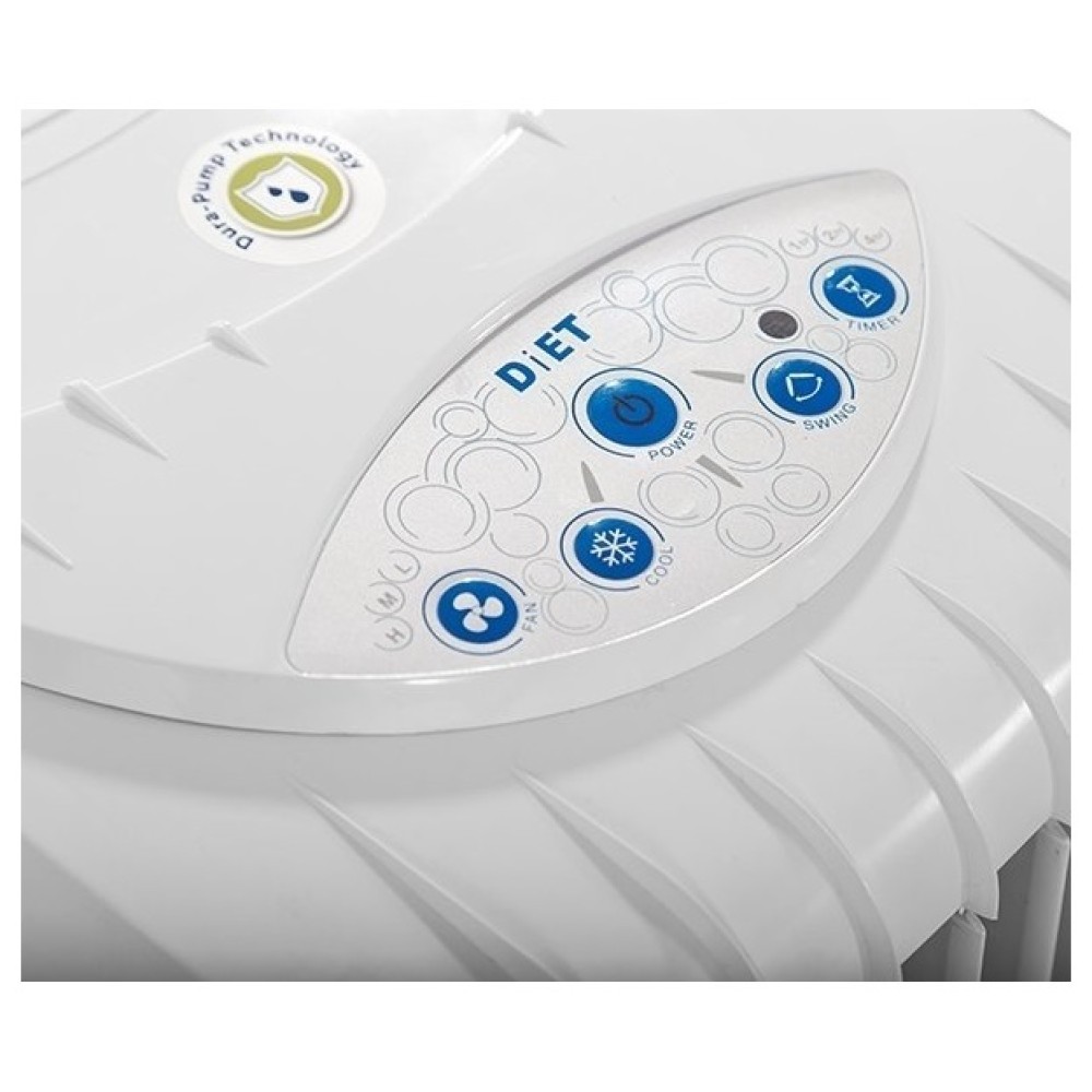 Мобильный кондиционер Symphony Diet 8i может самостоятельно и охладить, и увлажнить воздух в помещении, площадь которого не будет превышать 18 кв.м. Этот воздухоохладитель работает за счет охлаждающего эффекта при испарении воды. Как всем нам известно с уроков физики, когда происходит испарение влаги с какой-либо поверхности, на этот процесс затрачивается много тепла, поэтому и поверхность, с которой происходит испарение, и воздух охлаждаются. Встроенный вентилятор помогает распределить прохладный воздух по всему помещению, создавая мощный поток воздуха, рассеивающийся жалюзи по всей площади комнаты.