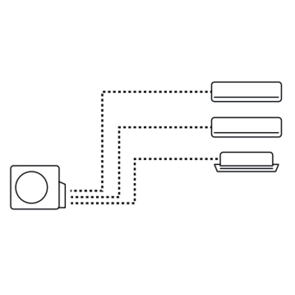 - Комплектация внутренними блоками, суммарная производительность которых в 1,5 раза больше.