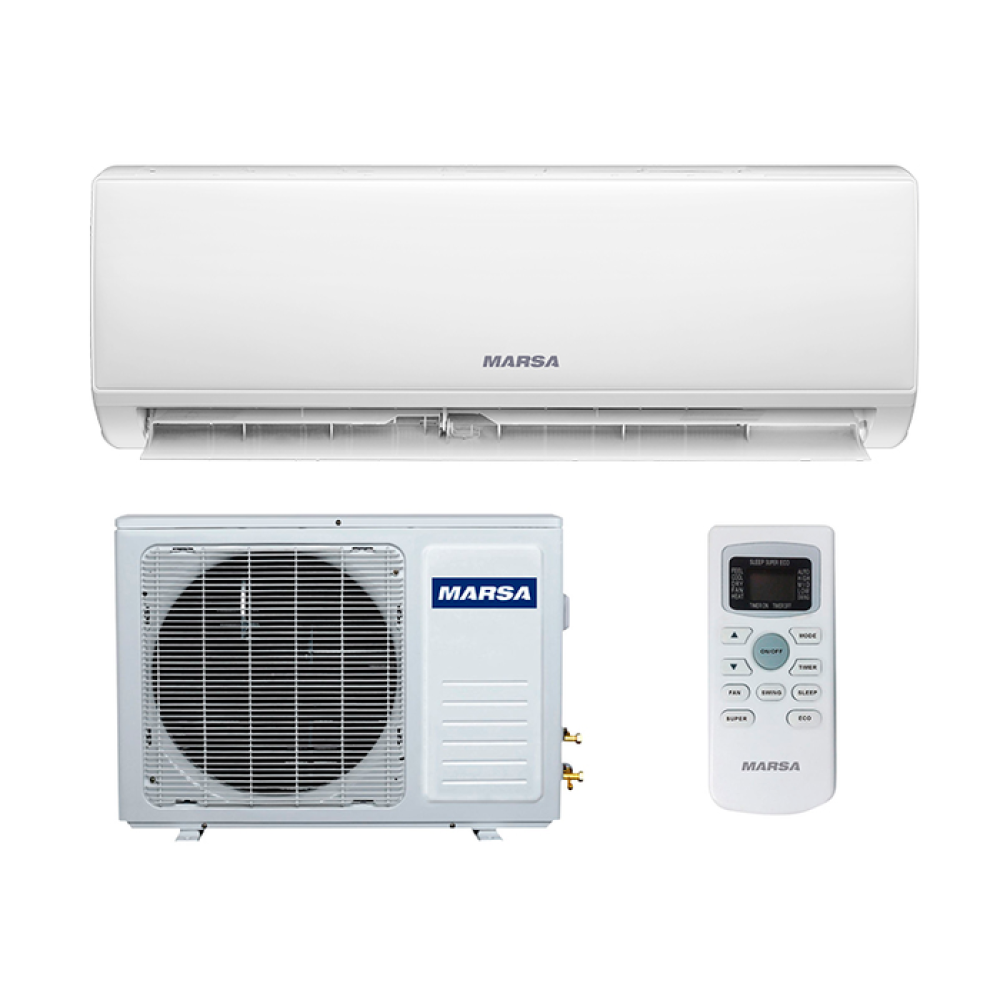 Marsa (Марса) RK-24MTA2 – современная система кондиционирования воздуха, предназначенная для обслуживания бытового помещения, площадью до 70 квадратных метров. Внутренний блок выполнен в классическом корпусе белого цвета, оснащен светопрозрачной лицевой панелью с LED-дисплеем. В случае непредвиденного отключения, прибор самостоятельно возобновит работу с ранее заданными параметрами. Приятным дополнением является удобный и понятный пульт ДУ, поставляемы й в комплекте с оборудованием.