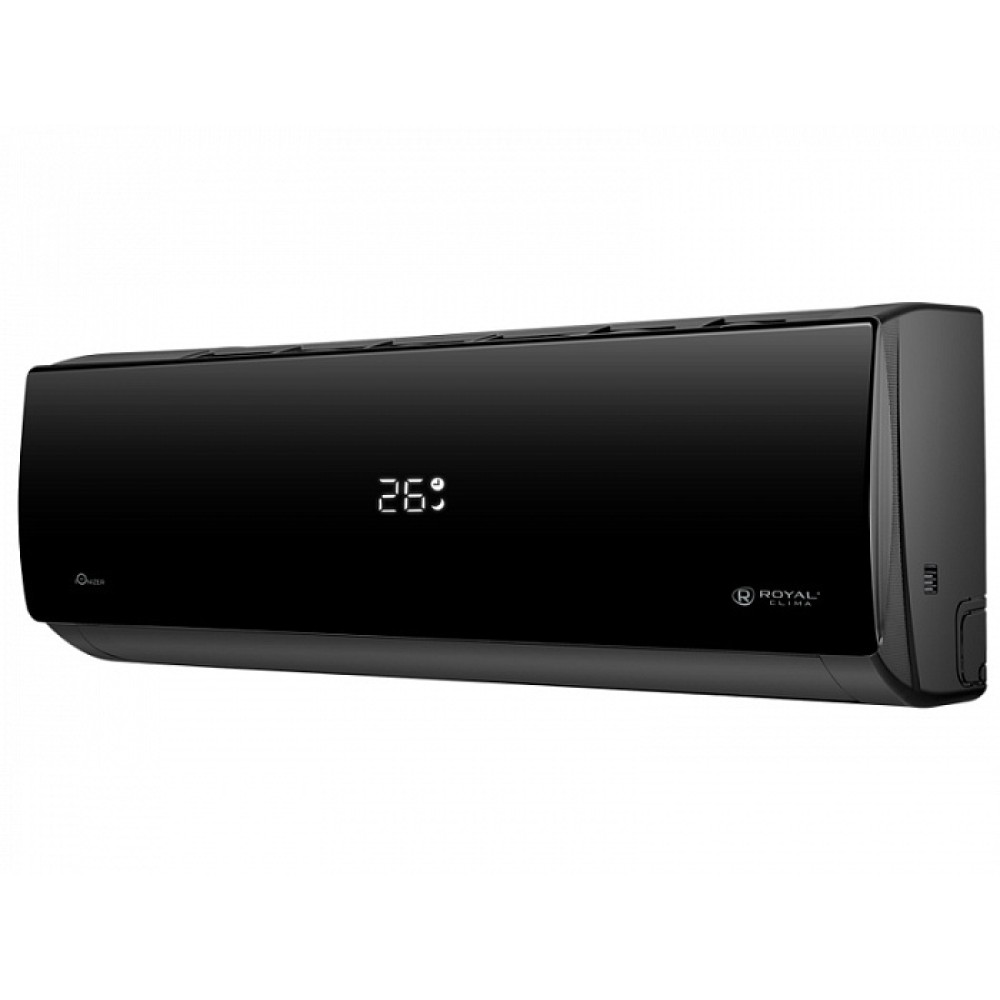 Royal Clima (Роял Клима) RC-AN28HN — эта настенная сплит-система выполнена в классическом стиле, но с дополнительным штрихом: внутренний блок представлен в элегантном черном цвете. Система имеет низкий уровень шума. Изделие состоит из двух блоков: внутреннего и внешнего. Устройство оснащено дополнительной звукоизоляцией компрессора.