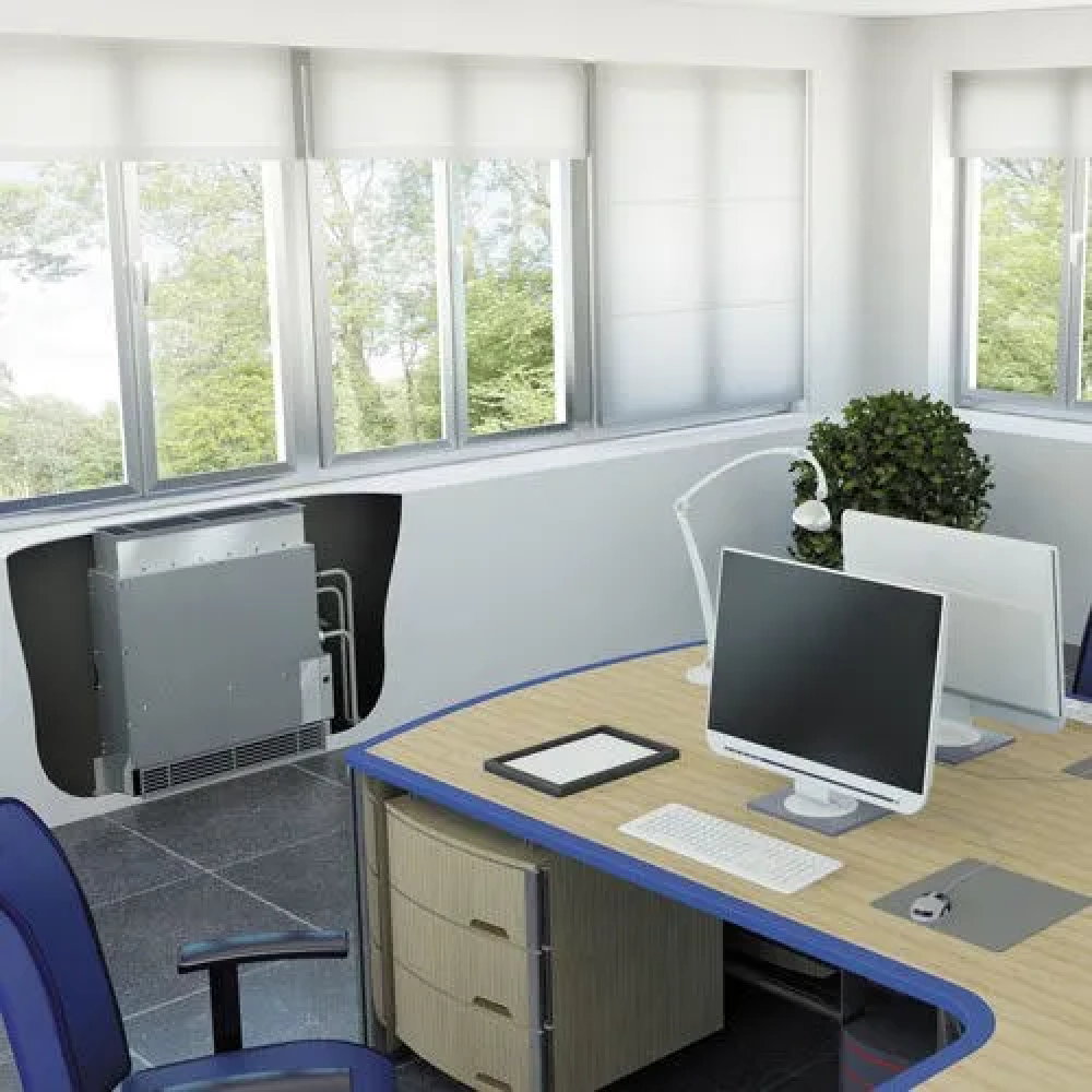 - Кондиционеры идеальны для применения в офисах, магазинах и жилых помещениях. Легко вписываются в любой интерьер: видны только декоративные решетки