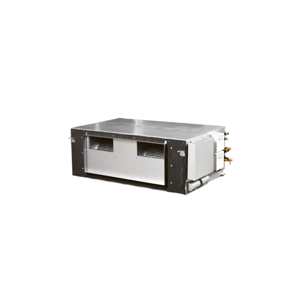 - Допустимы увеличенная протяженность и сложная конфигурация воздуховодов за счет высокого статического напора (до 400 Па) — идеальный вариант для кондиционирования вытянутых помещений большой площади