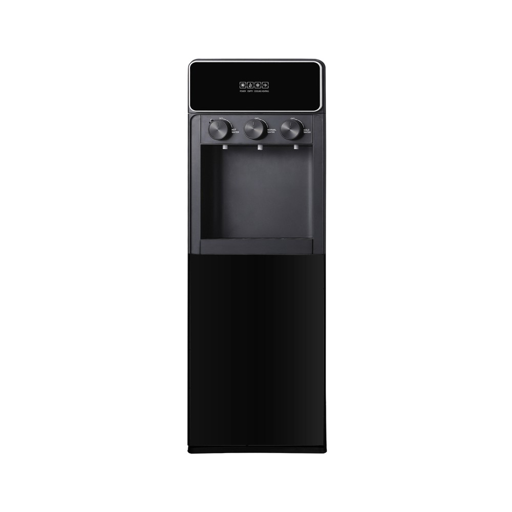 Кулер для воды LC-AEL-825a full black - напольный кулер с нижней загрузкой бутыли, с компрессорным охлаждением и поворотными кранами подачи воды. Корпус полностью черного цвета. Три крана подачи воды: горячей, холодной и комнатной температуры. На кране горячей воды располагается кнопка от случайного нажатия. В процессе эксплуатации аппарата в тот момент, когда вода в бутыли закончилась, на панели индикации загорится индикатор наличия воды в бутыли. Это символизирует о том, что необходимо заменить пустую бутыль.
