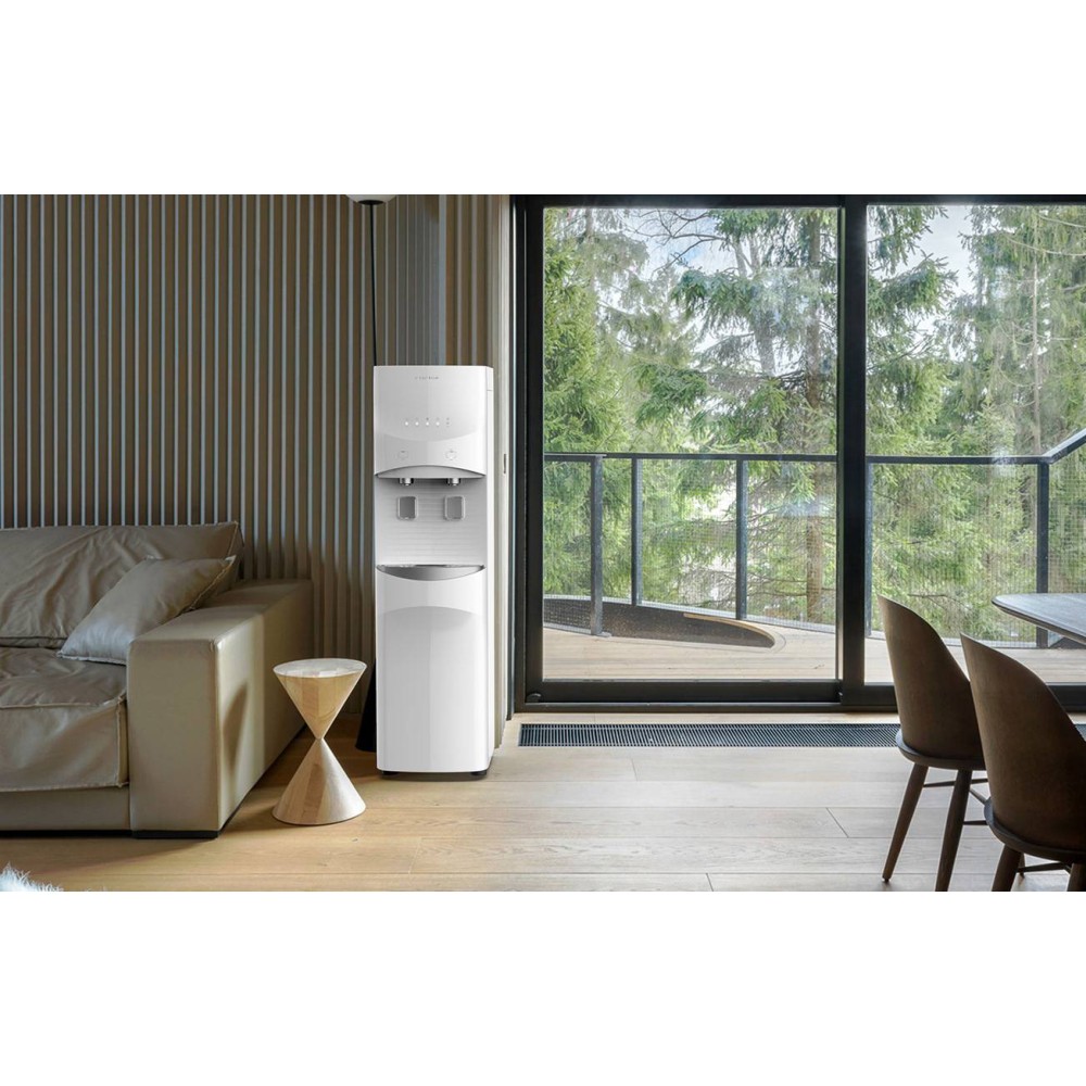 Доступен только под заказ. Напольный пурифайер с фильтрацией на основе технологии обратного осмоса, режимами холодной, горячей и комнатной температуры воды. Объемы накопительных баков - Холодная вода - 4,5 л, Комнатная вода - 11,1 л, Горячая вода- 3,4 л