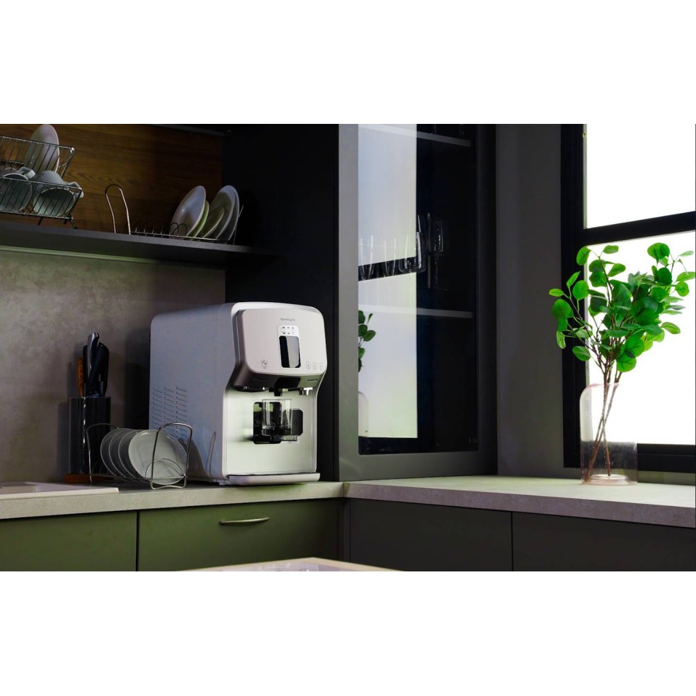 Доступен только под заказ! Аппарат с системой фильтрации на основе технологии обратного осмоса, режимами холодной, горячей, комнатной температуры воды, газированной воды и генерации льда. Объемы накопительных