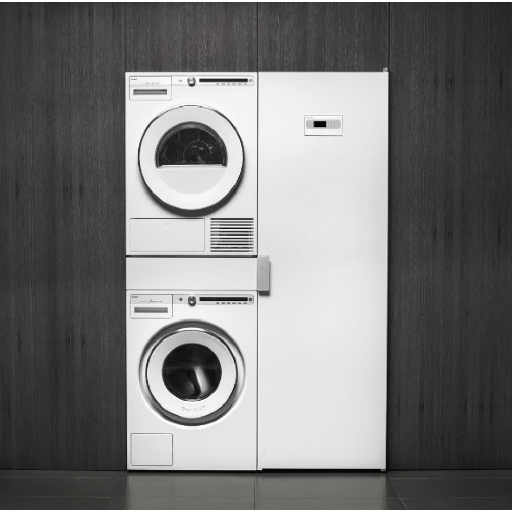 Корпус универсального белого цвета изготовлен из металла. Поверхность легко очищается от загрязнений, а также идеально сочетается со стиральной и сушильной машиной этого же бренда, что позволяет создать многофункциональный комплект техники. Благодаря продуманной конструкции устройства не занимают много места, поэтому могут быть установлены в обычной ванной комнате. Сушка производится при помощи теплого воздуха, который создается нагревательными элементами и распространяется по всему объему при помощи вентиляторов. Влажный воздух удаляется из сушильного шкафа через вентиляцию. Максимальный вес загрузки шкафа составляет 4 кг одежды, а скорость удаления влаги равна приблизительно 17,5 г/мин. Модель высотой 184 см и стандартной шириной 60 см может устанавливаться рядом с колонной из стиральной и сушильной машин, образуя домашнюю прачечную. Открытая панель управления с блокировкой от детей находится на дверце: она содержит кнопки включения и выбора программ, а также двухстрочный дисплей. Для безопасной установки шкафа служат регулируемые ножки и монтажный комплект для крепления к стене.