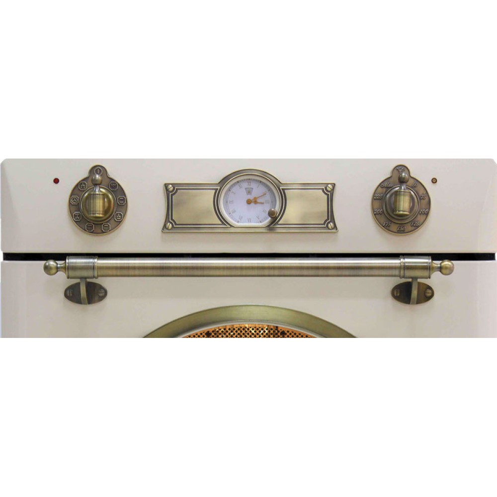 | Дополнительные параметры | Термоциркуляция. 5 уровней установки противней. Эмалированные металлические дверца и панель управления духовки. Хромированные боковые лестнички для противней. Система Teleskop для мягкого выдвижения противней, выдерживающих 15 кг. Система принудительного охлаждения корпуса. Многофункциональный аналоговый программатор. 2 эмалированных противня в комплекте. Колосниковая решётка. |