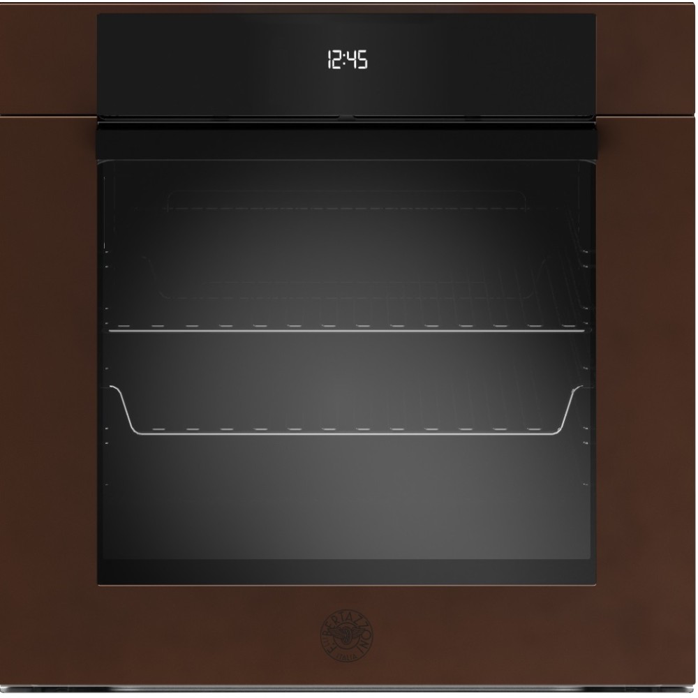 Bertazzoni F6011MODPLC — встраиваемый духовой шкаф с пиролизом в цвете медь. Управление происходит с помощью сенсорного дисплея. Внутренняя камера покрыта серой пиролитической эмалью, освещение боковое с двух сторон. Прибор имеет ряд полезных функций: эко, шаббат, разморозка, подержание тепла, расстойка теста, сушка.
