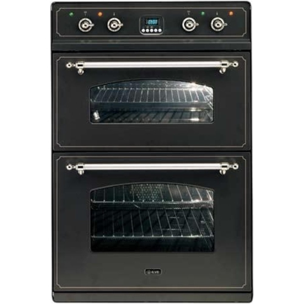 Прекрасный дизайн данного духового шкафа призван подчеркнуть стильный черный цвет его фасада, также интересна латунная фурнитура. Такое устройство прекрасно впишется в любую кухню. Качественные характеристики его работы также поражают, ведь Вы сможете готовить самые разнообразные блюда при помощи двух духовок разных размеров. Нагрев духовок происходит мгновенно после их включения.