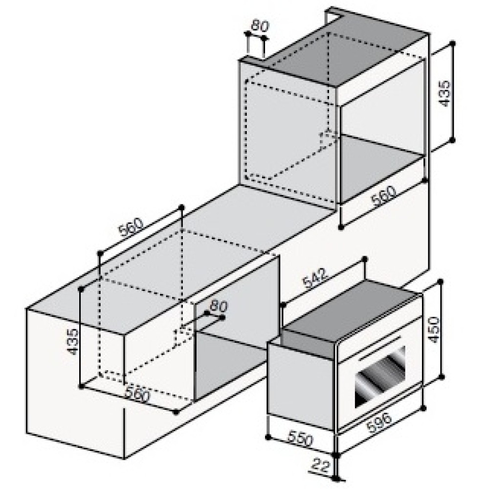 | Размеры ниши для встраивания, ВхШхГ (см) | 45 х 56 х 56 |