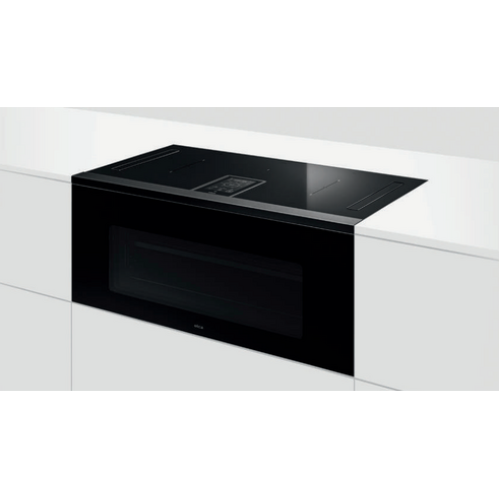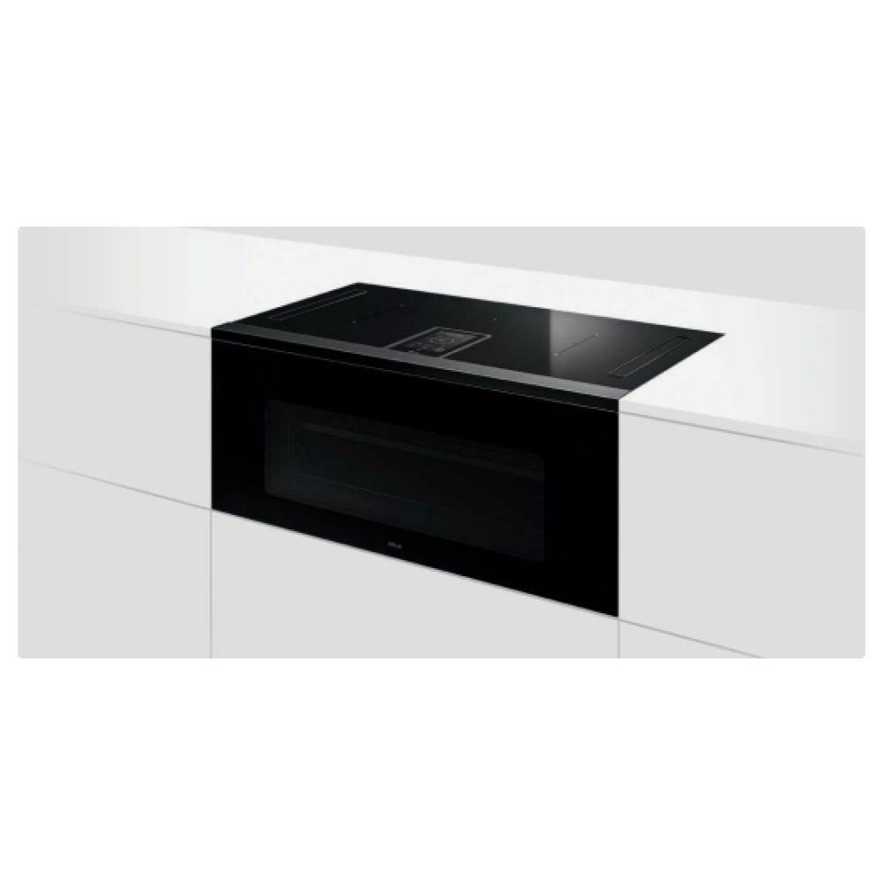 Данная особенность позволяет идеально встраивать его в кухонную мебель, оптимизируя пространство и улучшая дизайн помещения. Эстетическое впечатление? Превосходное! Предельная линейность и великолепная непрерывность поверхностей из черного стекла, полностью лишенных ручек и кнопок.