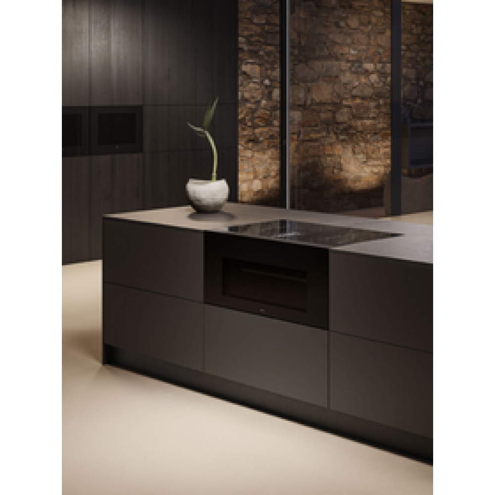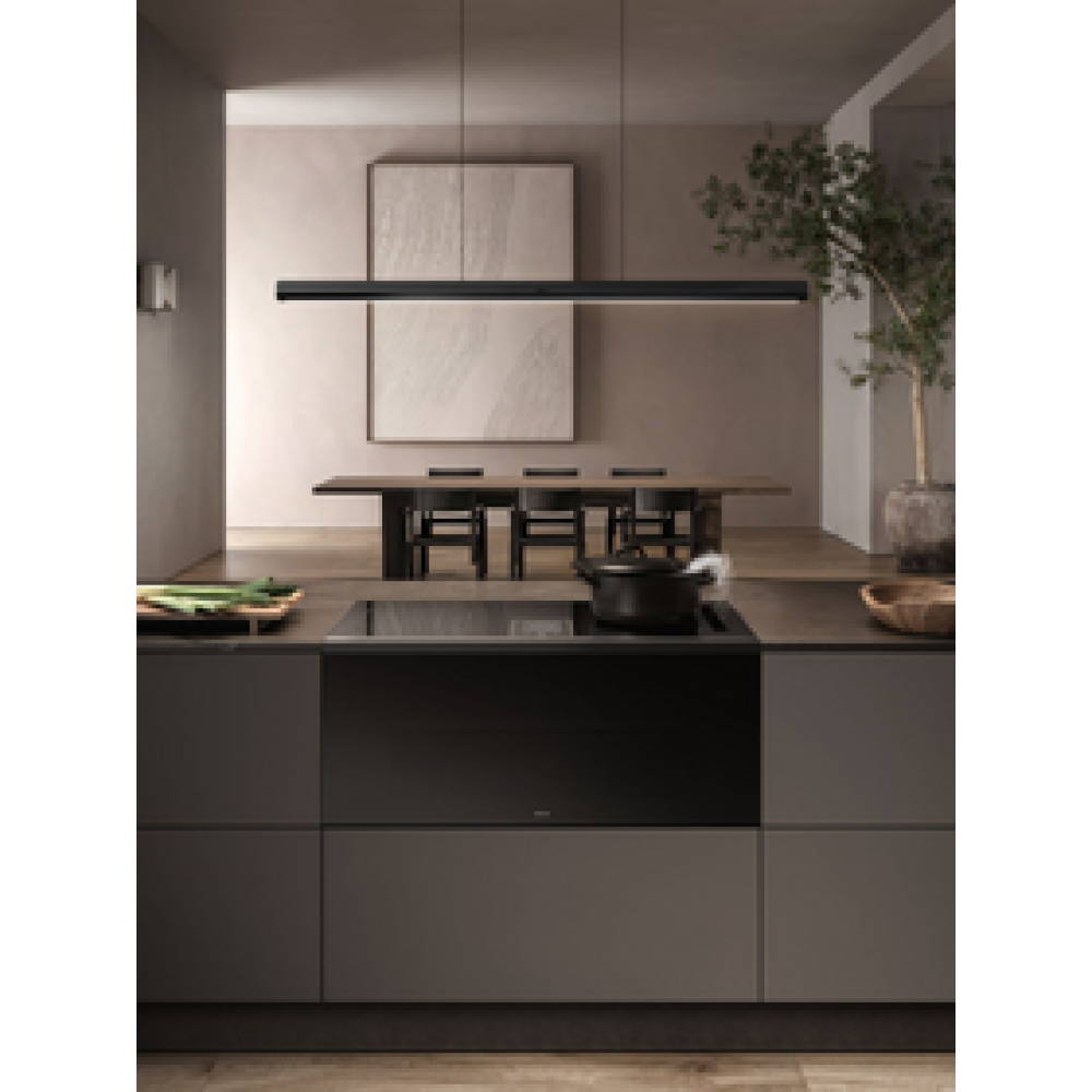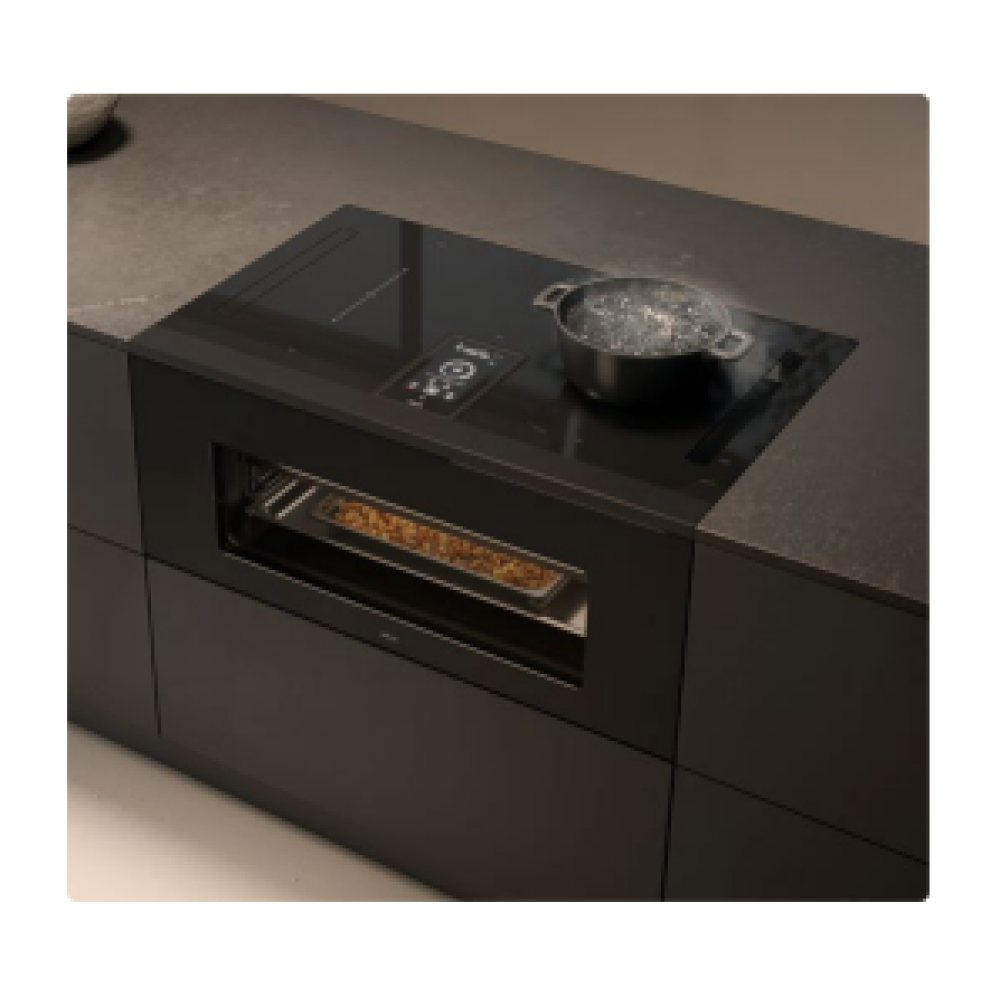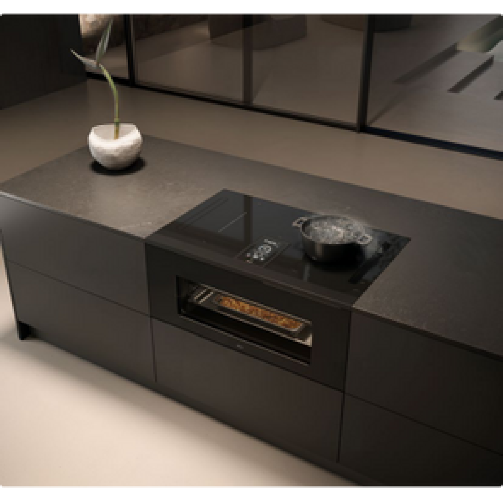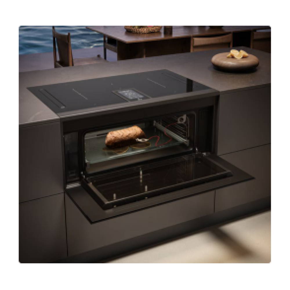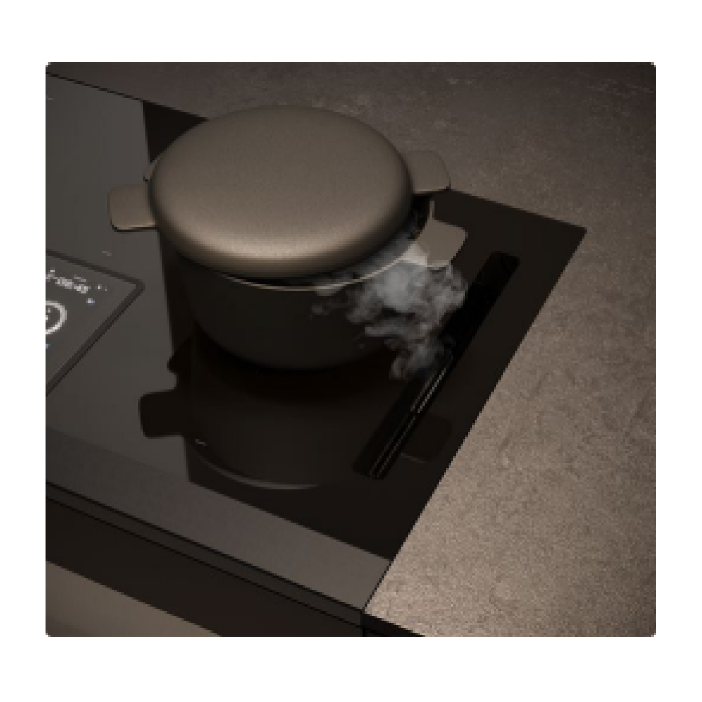 Революционный аспирационный центр Lhov удаляет пары и запахи не только с варочной поверхности, но и из духовки. Система вентиляции автоматическая, а на варочной панели она еще и селективная: при необходимости она активируется только с одной стороны (только там, где вы готовите).