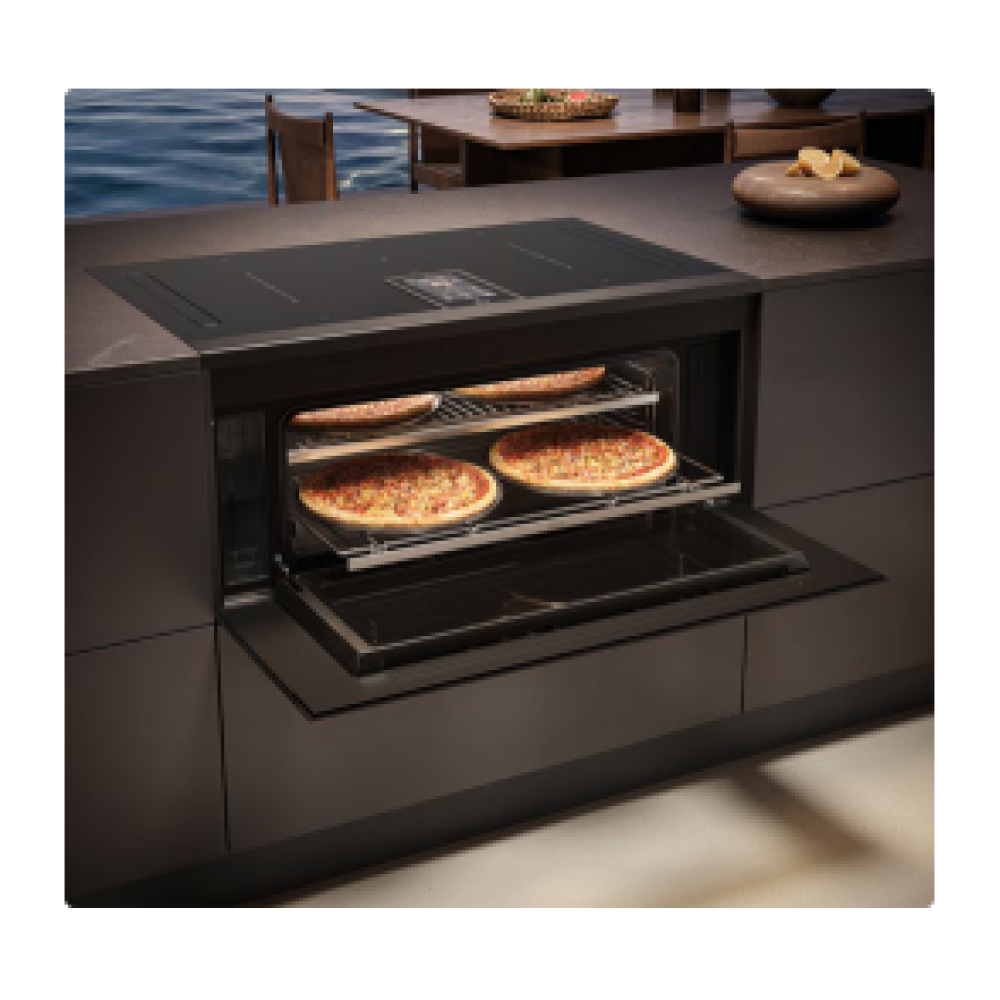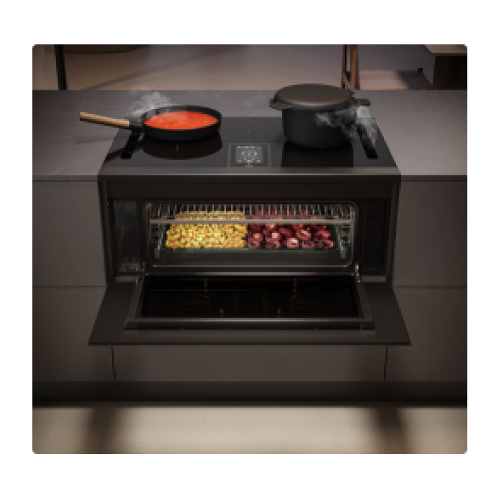 Lhov — первый на рынке прибор "все в одном" (All-in-One), и его инновационные характеристики говорят сами за себя. Шкаф с изящным дизайном из черного стекла — это уникальный синтез эстетики и производительности. Изделие идеально вписывается в кухонный интерьер, и дарит пользователю самые современные функции, комбинации зон и режимов приготовления. Новейший дисплей с "вау-управлением" готов исполнить любое ваше желание. И последнее, но не менее важное преимущество: наличие аспирационной системы нового поколения, способной улавливать пары и запахи с варочной поверхности, а также из духовки.
