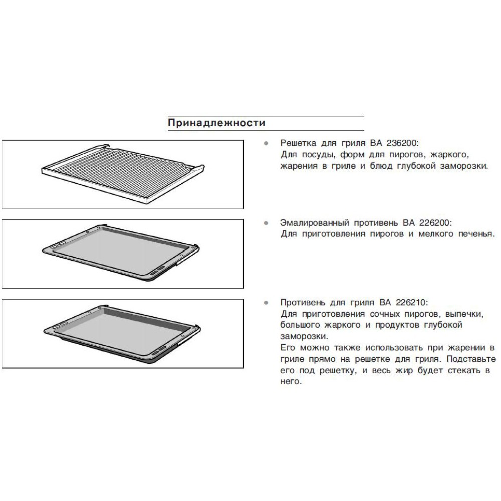 | Комплектация | Решетка Противень для жарки / гриля Противень для жира |