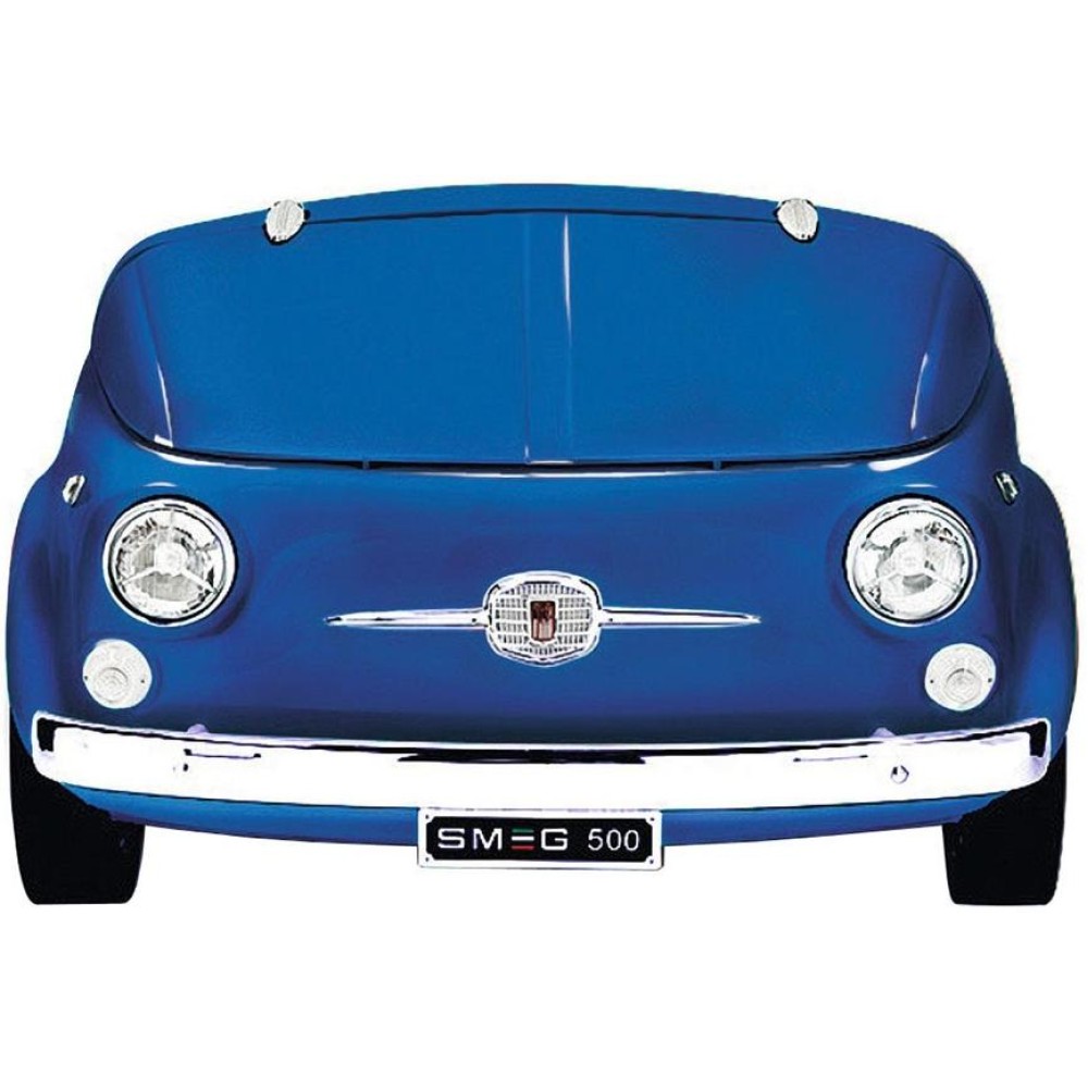 Smeg 500BL — отдельно стоящий мини-бар в корпусе синего цвета из эксклюзивной ретро-коллекции в стиле 50-х. Модель представляет собой имитацию автомобиля Fiat 500. Для открытия служат раздвижные дверцы из низкоэмиссионного стекла. Регулируемый термостат позволяет установить температурный режим в диапазоне от +8°С до +14°С. Объем камеры равен 100 литров, внутреннее наполнение состоит из 3 съемных держателей для бутылок и полки для жестяных банок. Специальное отделение предназначается для хранения закусок — например, сыра. Вентиляция гарантирует равномерное распределение холода.