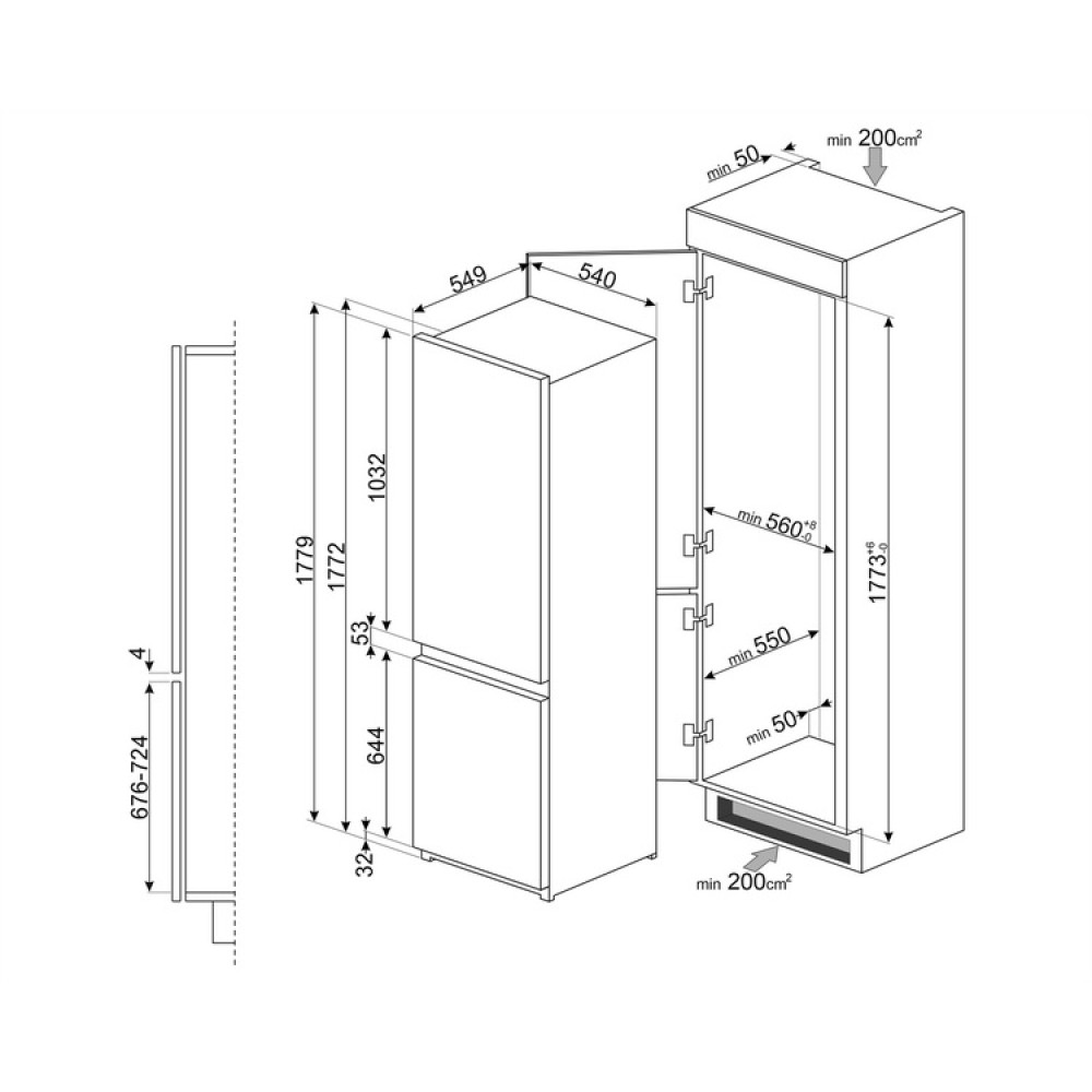 | Габариты ниши для встраивания (ВхШхГ) (см) | 178х56х55 |