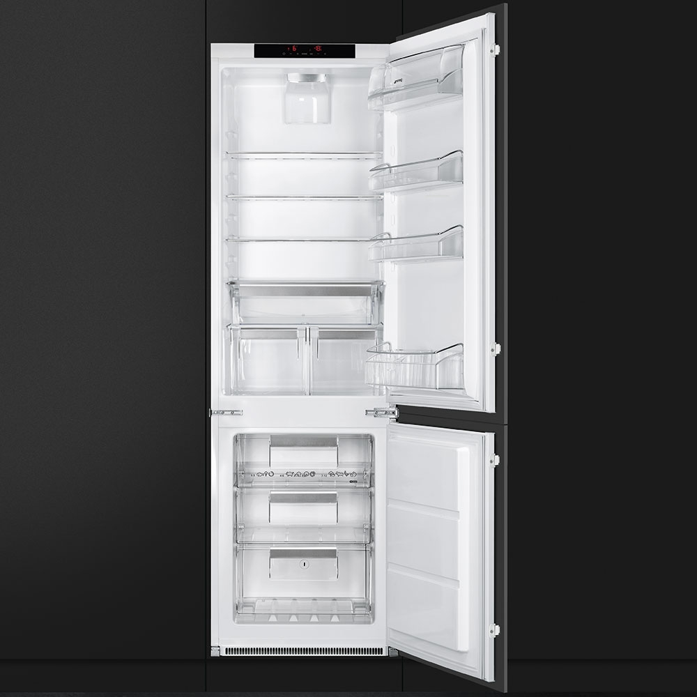 Комбинированный холодильник Smeg C8174N3E выполнен в классическом белом цвете. Благодаря возможности встраивания агрегат не занимает дополнительного пространства в интерьере. Встроенный вентилятор обеспечивает равномерное распределение холодного воздуха по всем камерам холодильника, что гарантирует одинаковое охлаждение продуктов питания. LCD-дисплей оснащен удобным и понятным сенсорным управлением. LED-освещение холодильного отделения устойчиво к перепадам низких температур, а также безопасно в использовании.