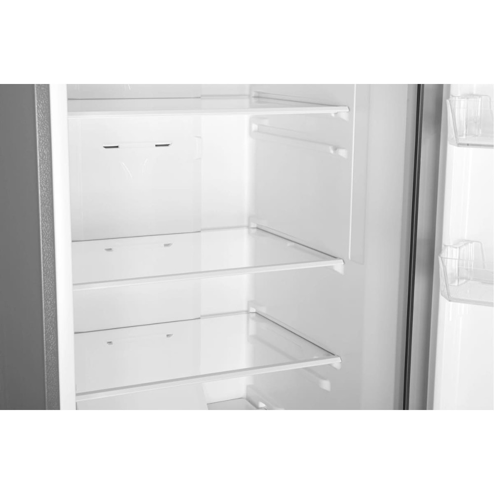 Данная модель — отдельностоящая, поэтому нужно тщательно подобрать место для ее размещения. Благодаря внушительным размерам, в частности высоте, она подходит большим пространствам — просторной кухне, еврогостиной. Вы можете поменять направление открывания двери, так как упор переставляемый и ее можно перевесить на другую сторону. Такая функция открывает больше возможностей для установки. Холодильник с морозильником обладает всеми опциями, которые чаще всего ищут и выбирают покупатели. Стандартная конфигурация — универсальный вариант для любой квартиры. Количество камер: 2.
