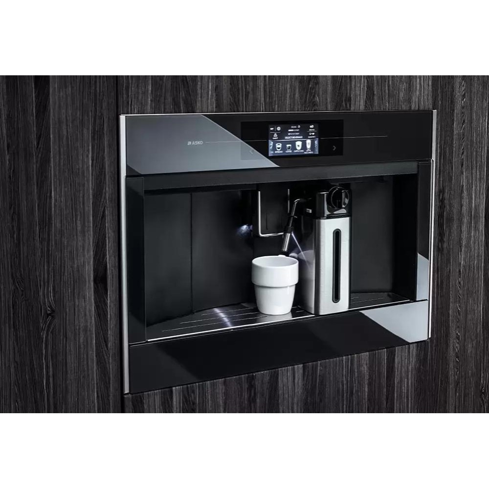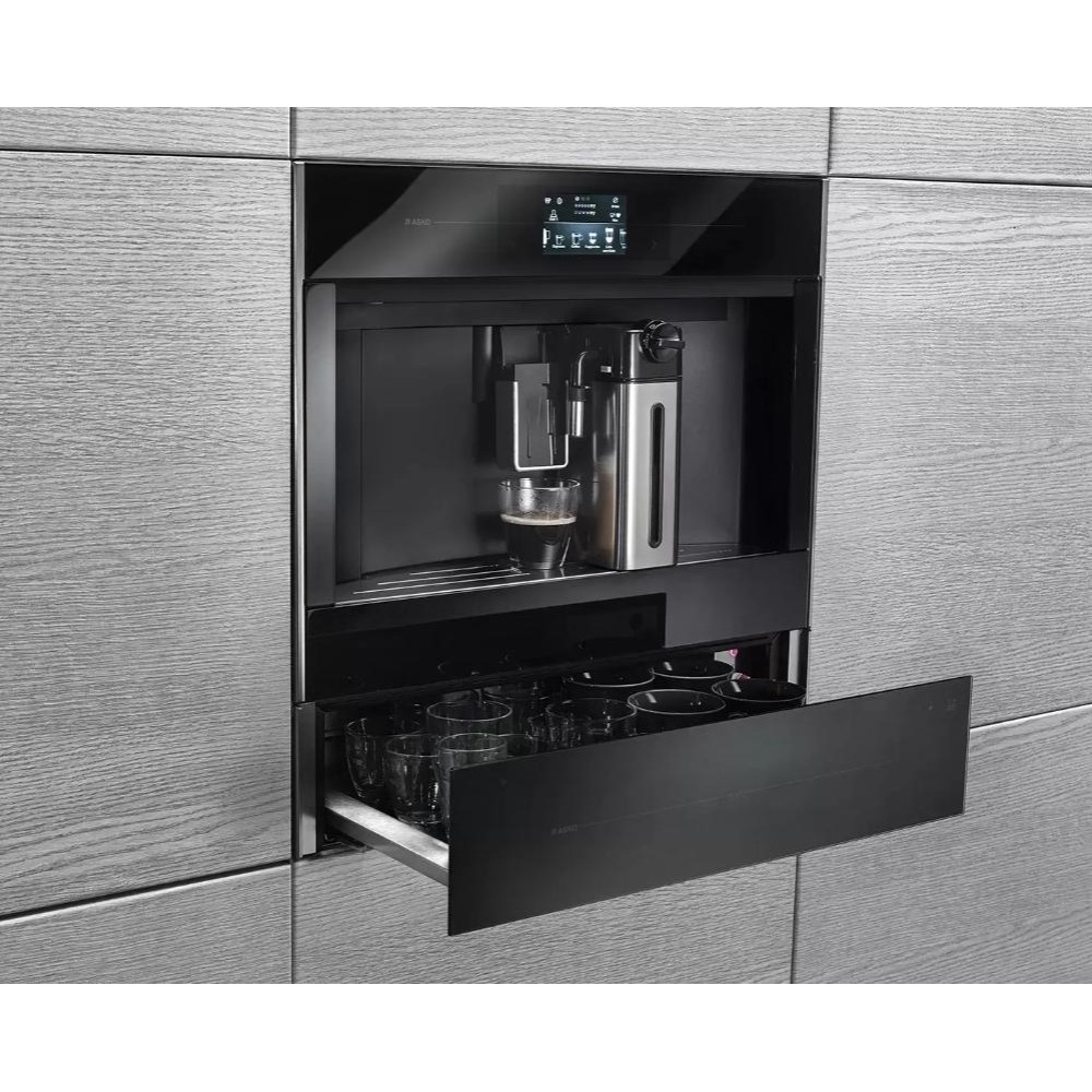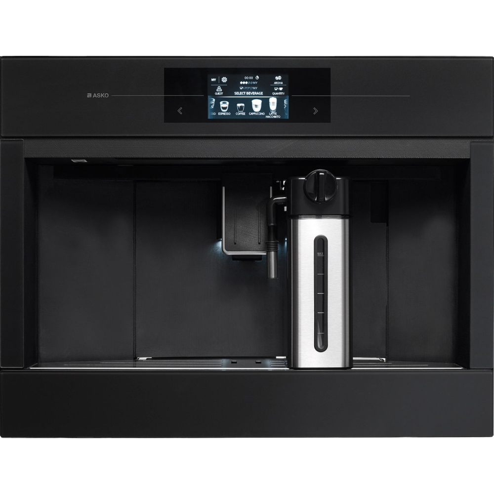 Модель с фасадом цвета «черное стекло» может устанавливаться в подвесной шкаф или колонну. Предусмотрено использование молотого и зернового кофе, а также приготовление двух чашек напитка одновременно. Автоматические программы позволяют готовить 13 видов напитков, в том числе с молоком и молочной пеной: эспрессо и двойной эспрессо, капучино, латте, латте макиато, лунго. При помощи полноцветного TFT-дисплея с настройкой цвета и сенсорных кнопок можно задавать одну из пяти степеней температуры напитков, регулировать размер порции. Чашки предварительно можно подогреть, поместив для этого на специальную полку. Для экономии электроэнергии в нерабочем состоянии предусмотрен режим ожидания. Полностью раскрыть вкус и аромат кофе позволит система предварительной варки. Удобный уход за прибором обеспечивает съемный заварочный узел, съемный поддон для сбора капель и разборный капучинатор. Автоматическая сигнализация оповестит о необходимости очистки. Предусмотрено создания шести профилей пользователя с запоминанием любимых настроек. Возможно также программирование собственных рецептов. Имеется специальное отделение для хранения аксессуаров.